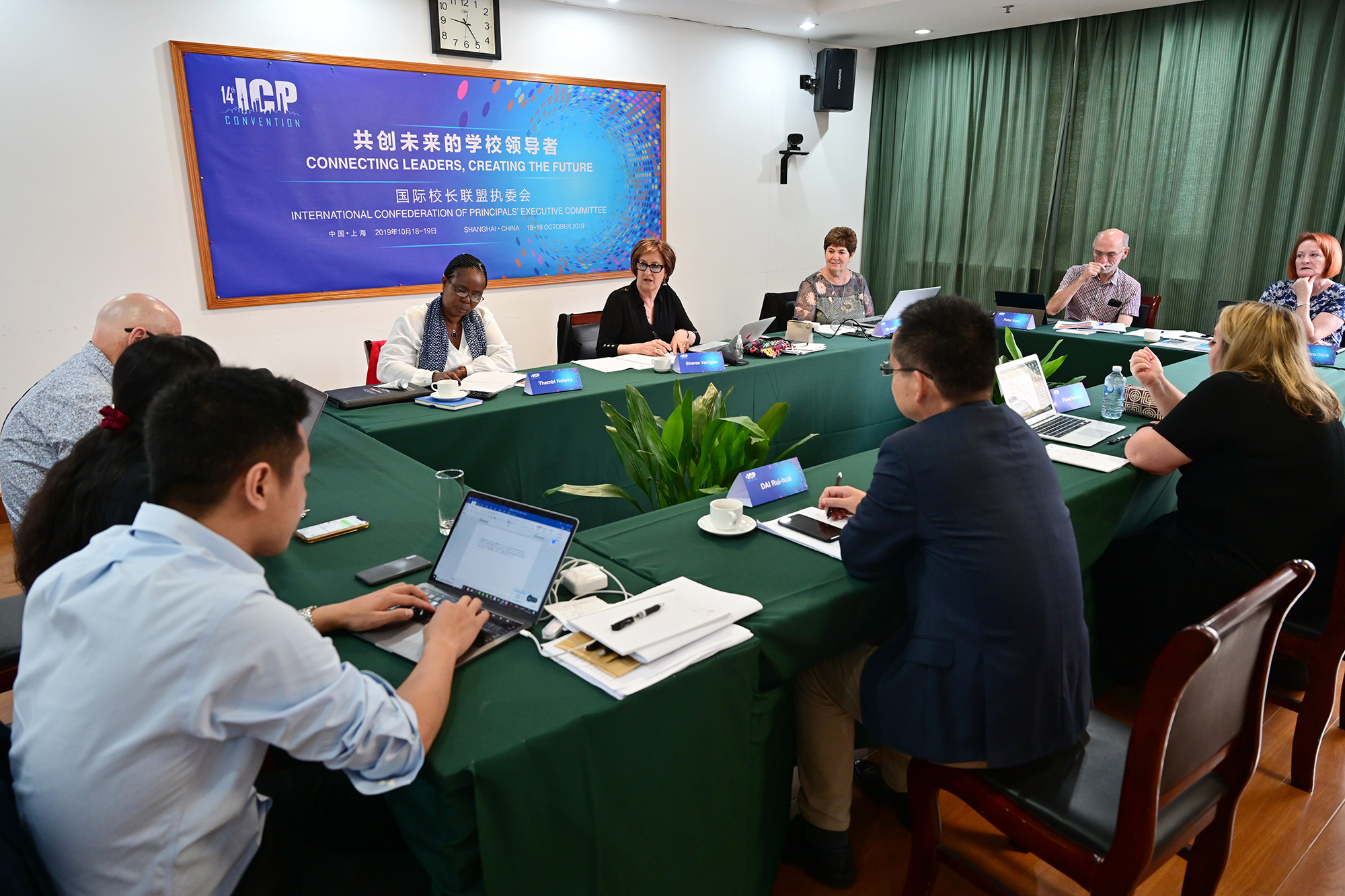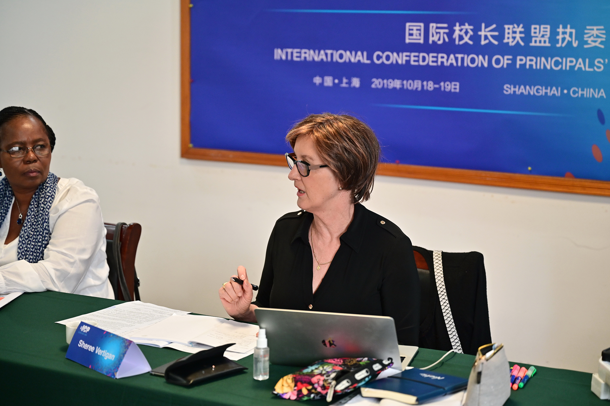 10月18-19日,国际校长联盟(International Confederation of Principals,ICP)2019年度第二次执委会会议在华东师大教育部中学校长培训中心举行,出席会议的有国际校长联盟主席Alta van Heerden、前任主席Fiona Forbes、候任主席Peter Kent,秘书长Sheree Vertigan、前任秘书长Rob Nairn,欧洲区执委Maria Doyle、非洲区执委Thembi Ndlovu、亚太区执委代蕊华等。