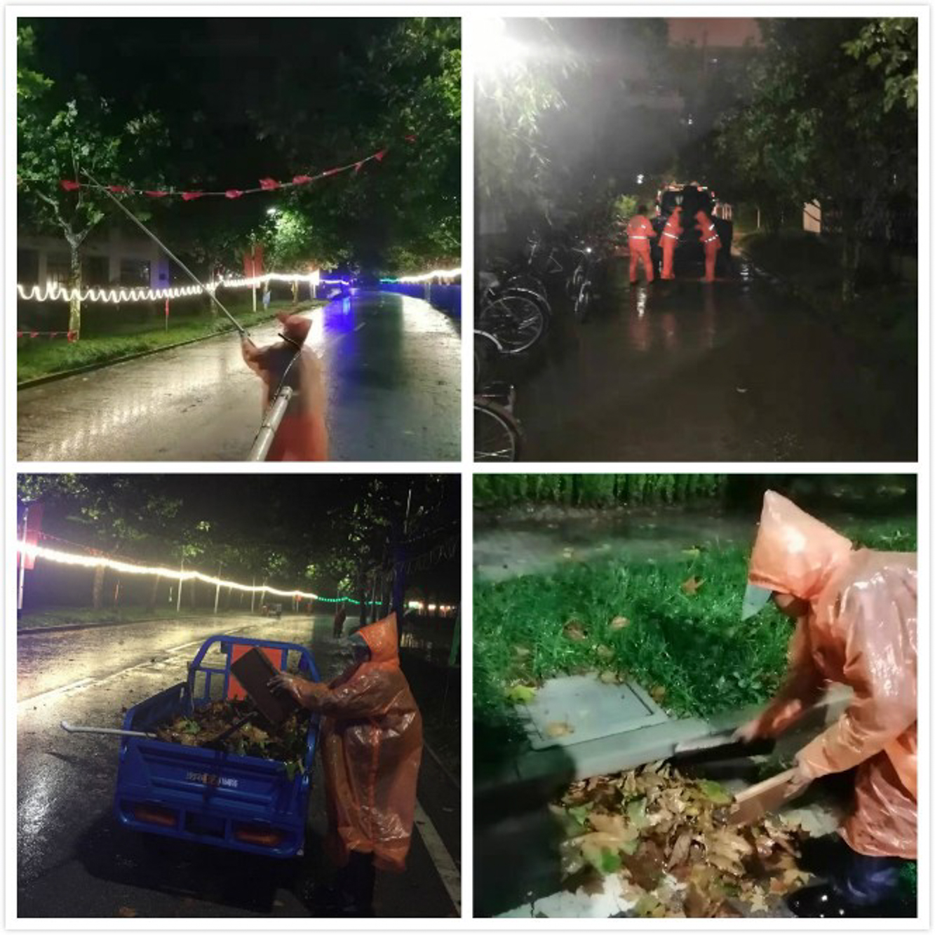 国庆期间,18号台风“米娜”(强热带风暴级)夹带着狂风暴雨袭击上海,全体后勤值守员工,以及应急抢险队伍及时启动对应预案,恪尽职守,抗击台风,守护学校平安。