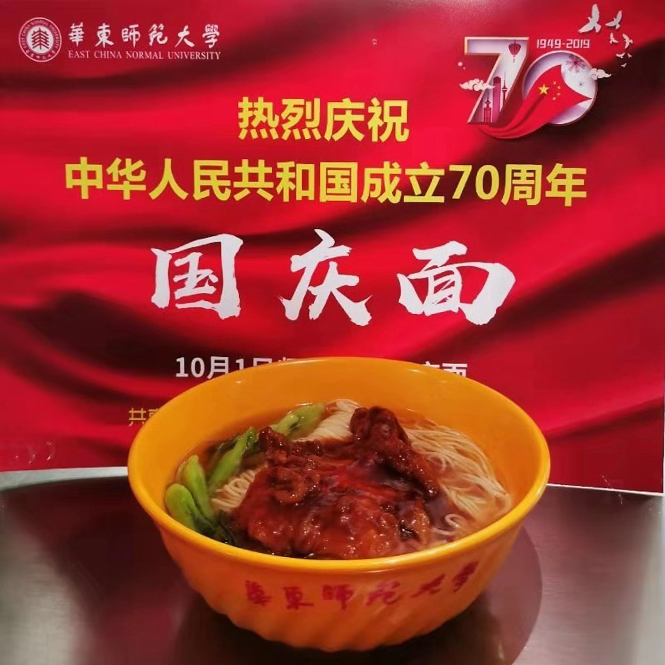 为了加深节日气氛,我校两校区食堂特推出了寓意祖国生日快乐的特色“国庆面”,价格在4-10元之间,让师生能够在观看国庆阅兵之余,吃国庆面为祖国母亲庆生。