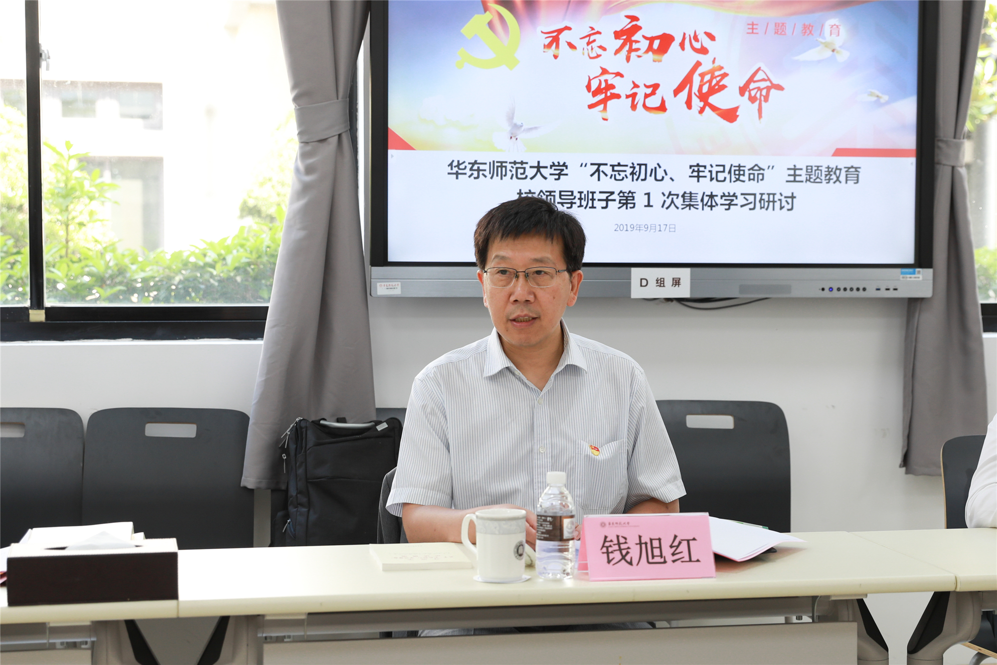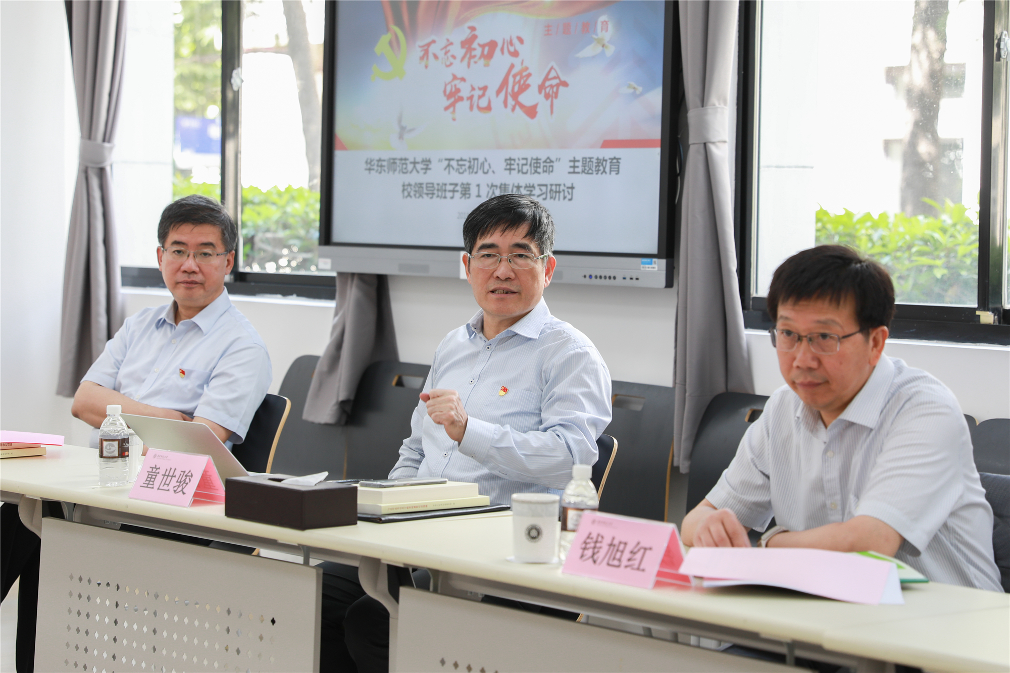校党委书记童世骏从哲学视角对“初心”的含义进行了解读。他指出,“初心”是我们在当下所具有的一种面向未来的历史记忆,是在今天之认识和未来之目标基础上对我们事业之起点和原则的重新确认、重新承诺。我们既要从以往诺言之实现当中获得自信和力量,也要以自我革命的精神去反省那些尚未被完全兑现的诺言,并且为实现这些尚未被完全兑现的诺言而不懈斗争。作为华东师大工作的共产党员,不忘初心的最重要含义是为办好人民满意的教育作出更大贡献;为此我们要与前进路上的艰难险阻作斗争,与工作当中的不足和短板作斗争。校长、校党委副书记钱旭红表示,中国共产党人的初心和使命是为中国人民谋幸福,为中华民族谋复兴,华东师大人的初心和使命,就是要努力为国家、民族和人类提供幸福解决方案,奉献幸福之花,履行好“育人、文明、发展”的三大使命。校党委副书记朱民指出,“不忘初心、牢记使命”主题教育是学校改革发展的内在需求,要弘扬和传承老一辈华东师大人拼搏、敢战的精神,把各项工作当作事业而不是任务来做。校党委常务副书记王宏舟强调,无论是对学校的整体事业发展,或是对校领导班子的自身工作,都要保持一股追求卓越的精气神和舍我其谁的使命感。