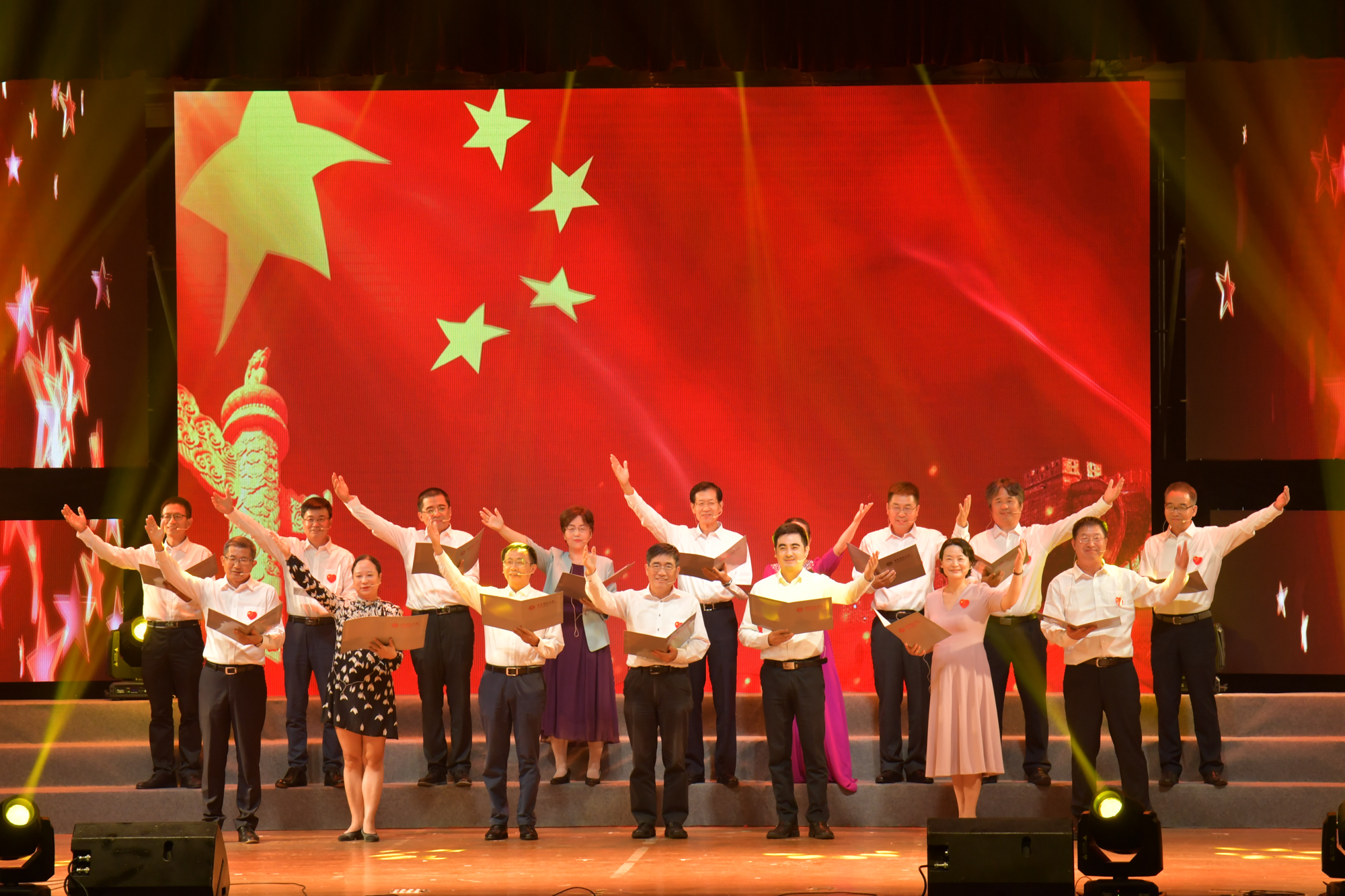 童世骏、王宏舟、曹友谊与7个民主党派、6个统战团体负责人一同登台,朗诵诗歌《今日之日,芳菲华彩》,深情歌颂了新中国成立70年来的发展成就,芳菲一曲献给祖国,盛世诗篇响彻全场。