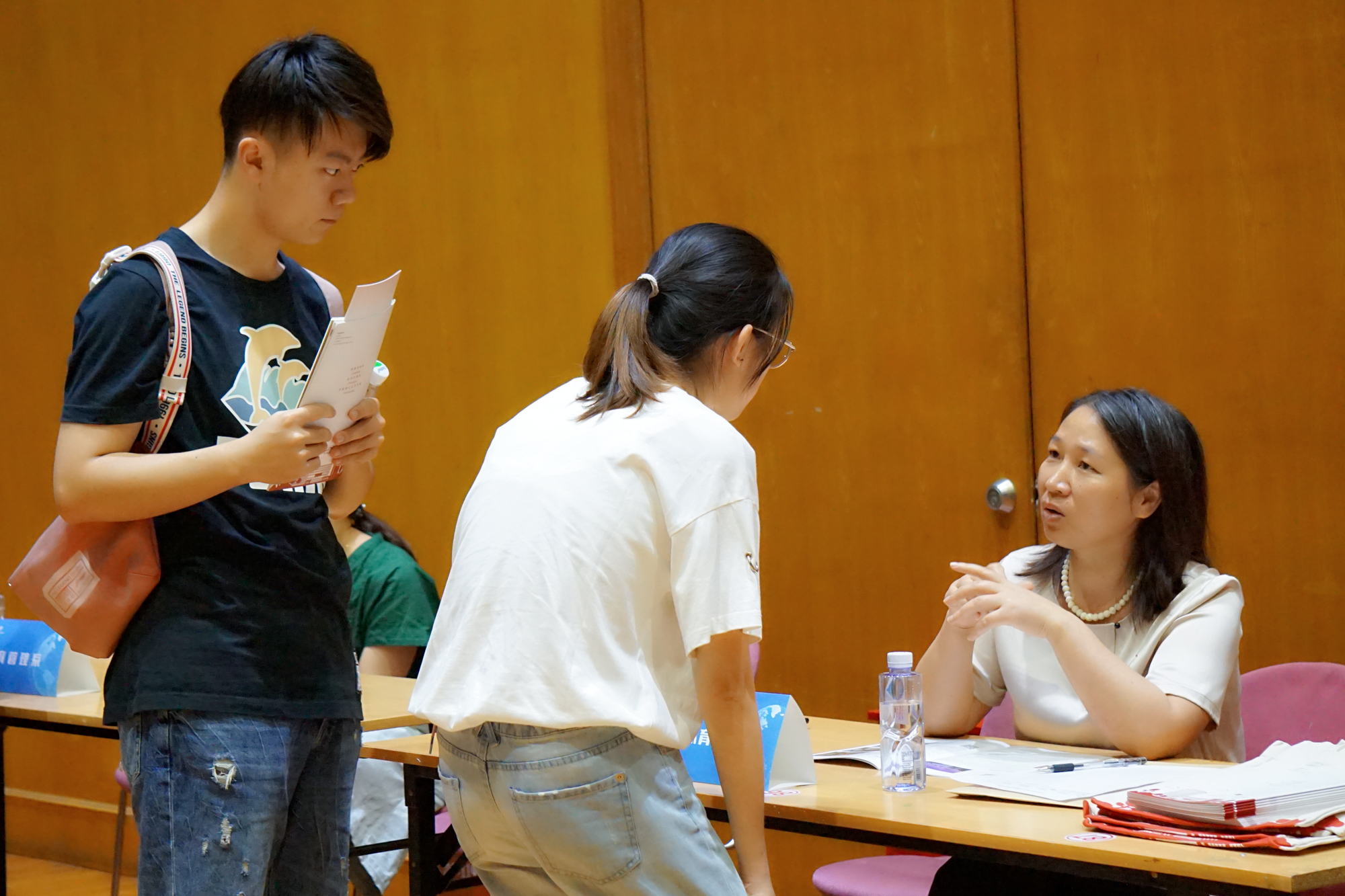 推免生接收政策和预报名、统考考点选择、初试复试的流程、专业和导师的选择,以及全日制与非全日制的报考是每年考生咨询的热点,老师们逐个问题耐心地为考生进行详细解答。此外,部分考生还关注了解了上海纽约大学和中法联合培养研究生项目,以及硕博连读、直博生和国际交流项目等情况。