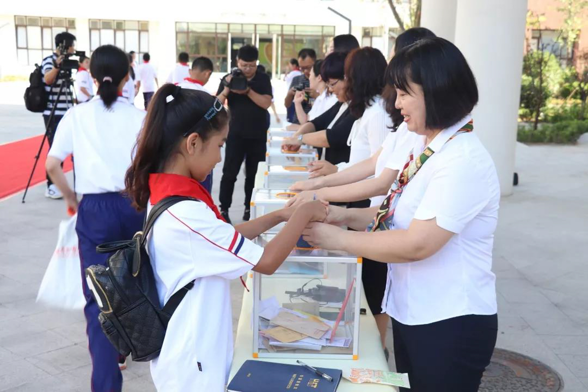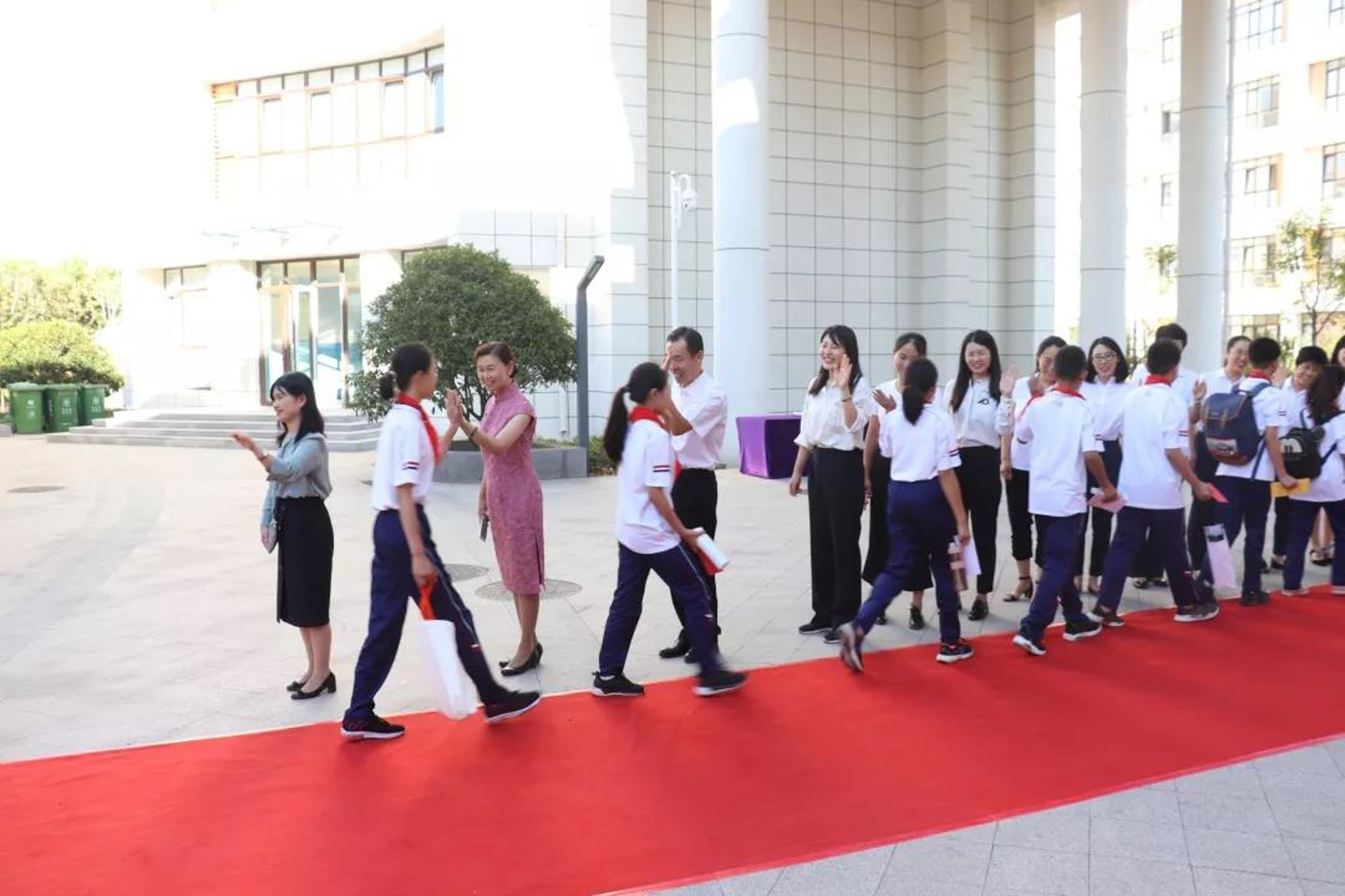 8月31日,3245澳门新莆京附属青岛学校的学生们迈着坚定自信的步伐从红毯走来,与列队的学校领导和全体老师依次击掌,一句句“欢迎你”代表着老师对孩子们的热情期待;一声声“加油”是老师对学生最真挚的祝愿响亮的击掌声是学生对学校的承诺,更是对自己的承诺。学生们还满怀憧憬地投下了一封信——《致二十年后的自己》,愿能照亮他们的梦想,助力他们迎风远航。