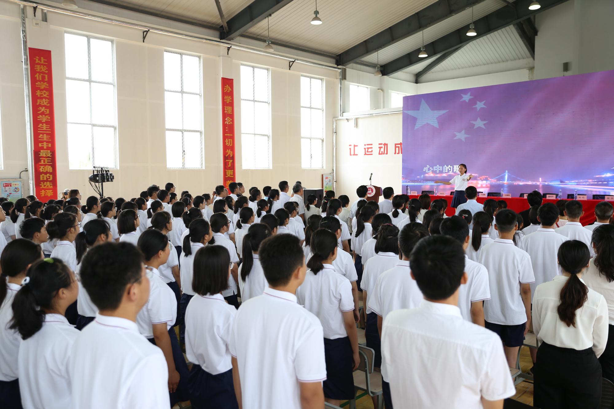 开学典礼在全体师生集体高唱《我和我的祖国》中顺利结束。