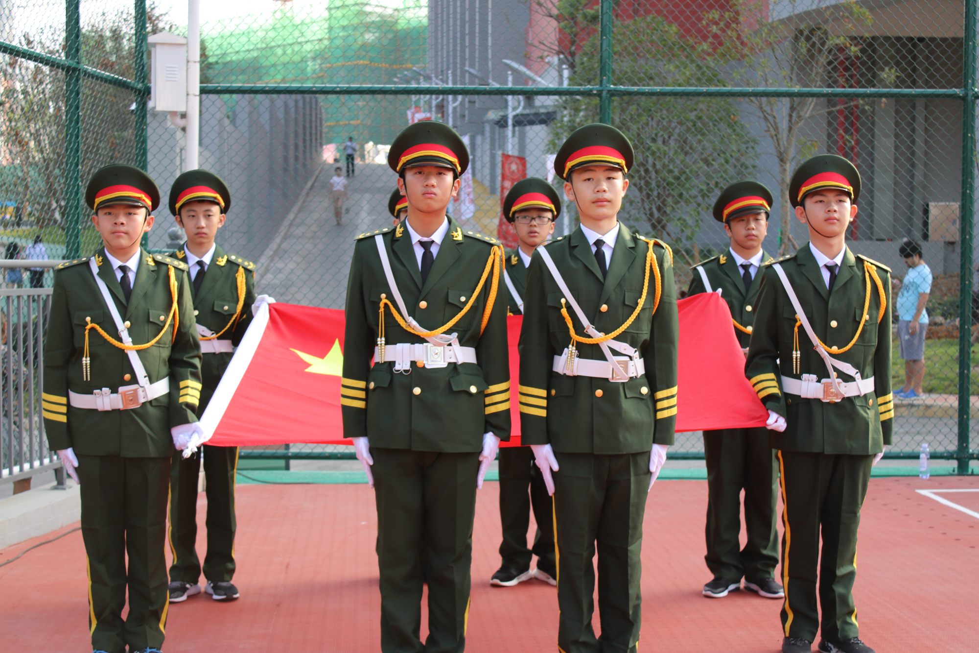 这是一场充满着豪情壮志的的典礼,一句句《中华少年》中的呐喊,一步步掷地有声的旗手步伐,是学生的年少热血、心怀天下;一封封来自父母、校长、班主任的信和寄语,承载着无数的希冀和祝福 ;一句句庄严誓言,是教师们为教育事业奋斗终身的拳拳之心。