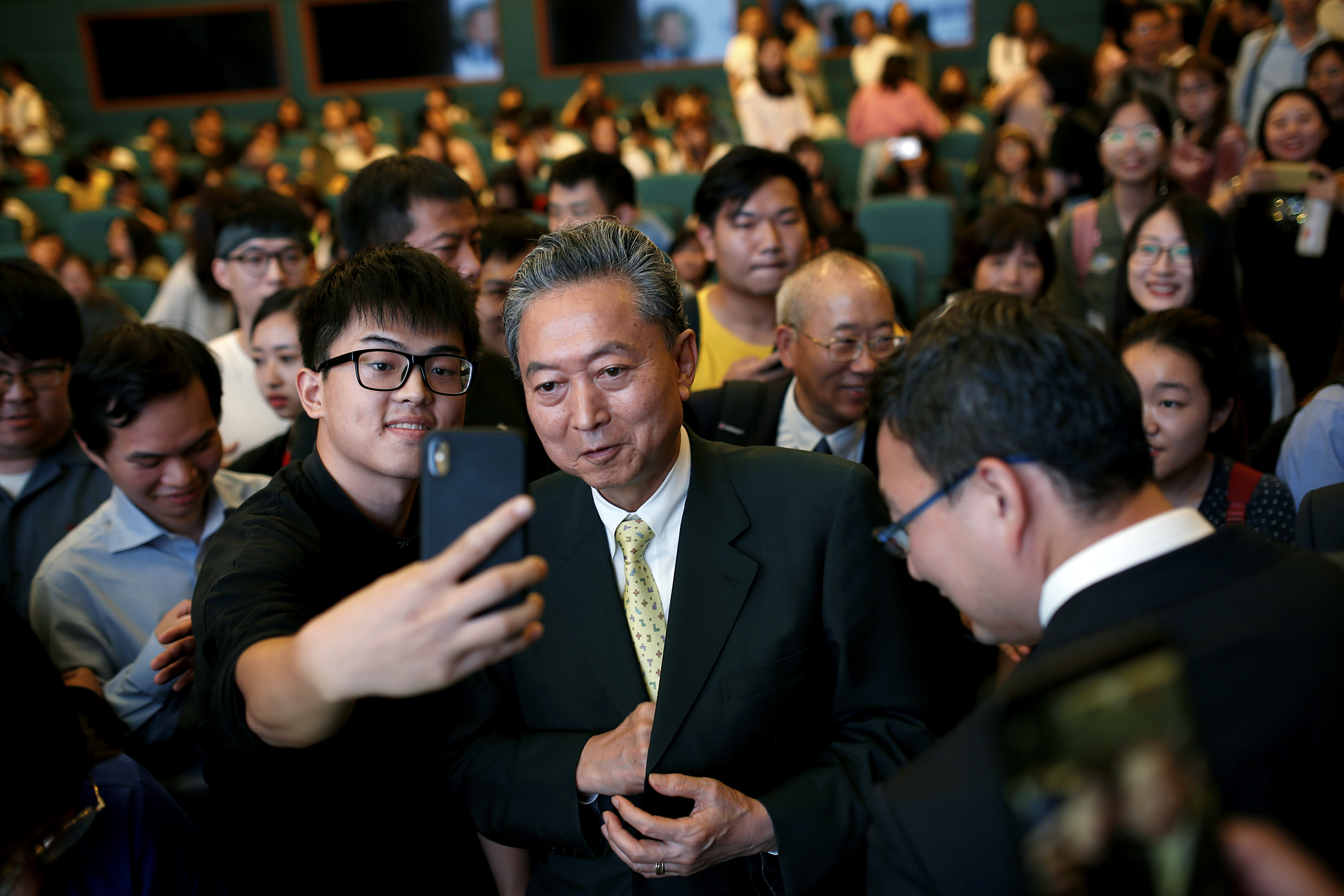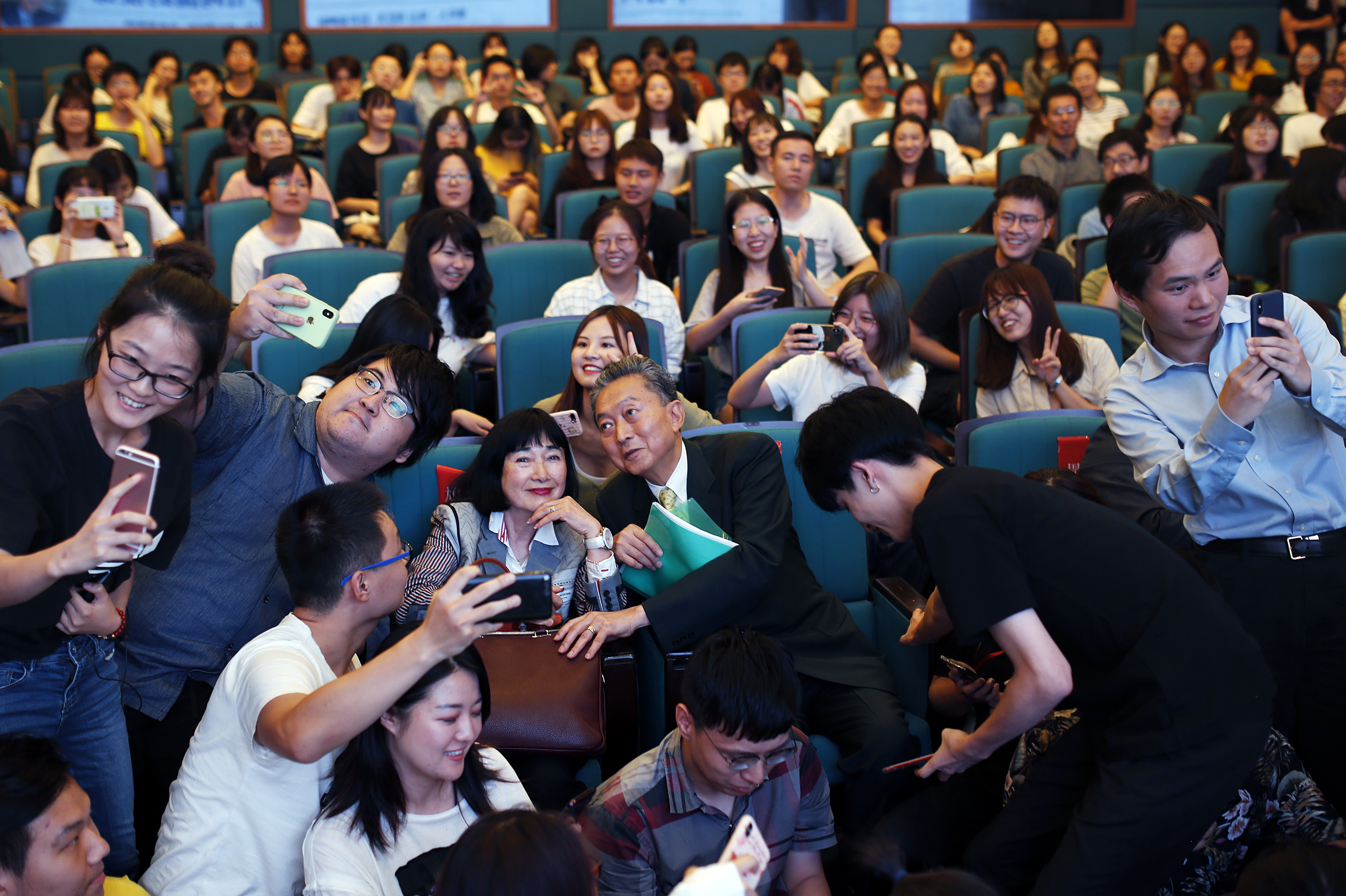 鸠山由纪夫与学生热情互动