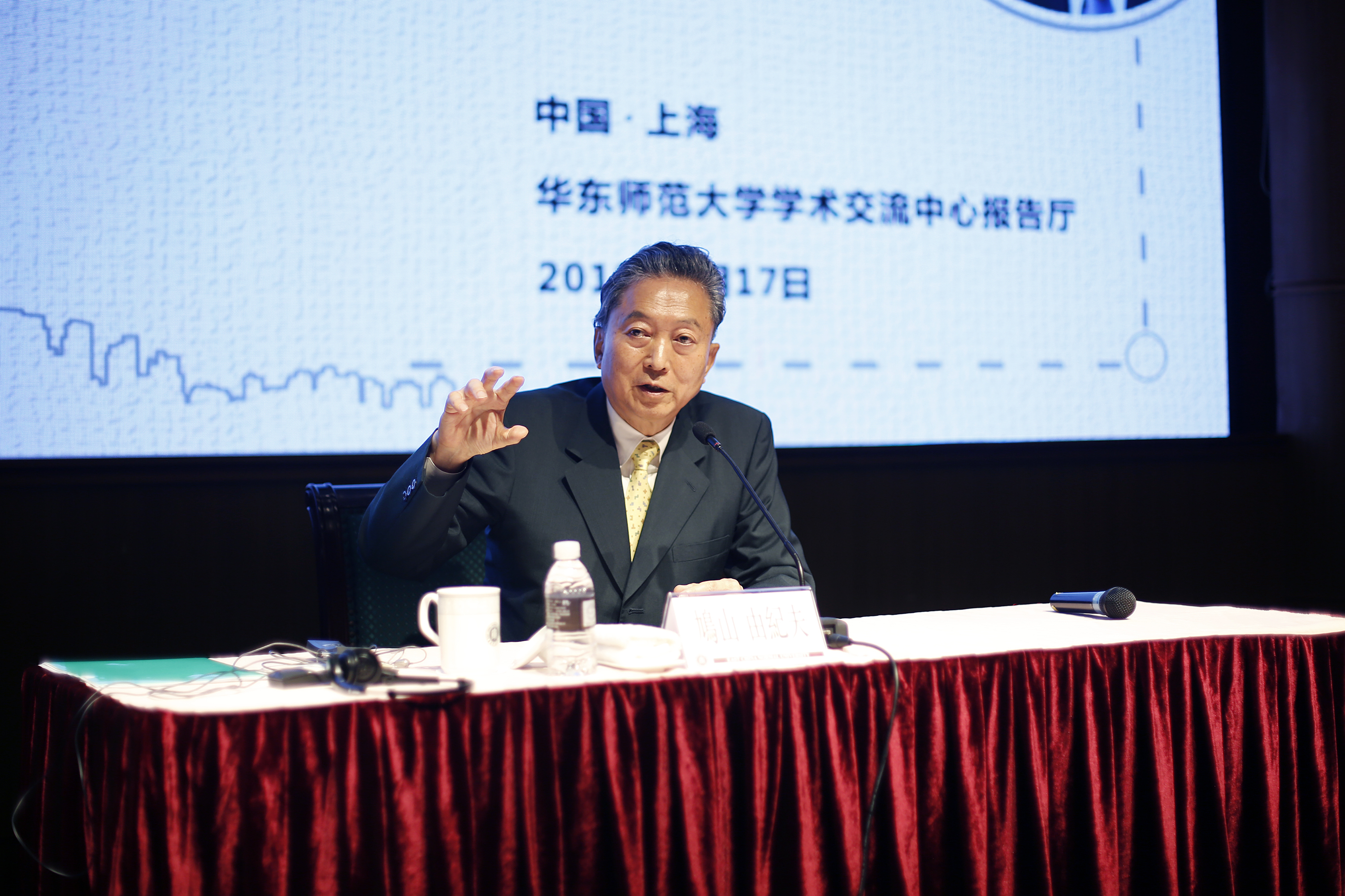 演讲结束后,鸠山由纪夫满怀热情地回答了现场来自华东师大国际关系与地区发展研究院、外语学院日语系学生以及媒体记者的提问。他尤其鼓励两国年轻人通过共事增进友谊,从而增进国家间的互信;并希望中国年轻人能发挥领导力,通过汉字文化等纽带,增进东亚文明交流,为人类幸福和世界和平发展作贡献。