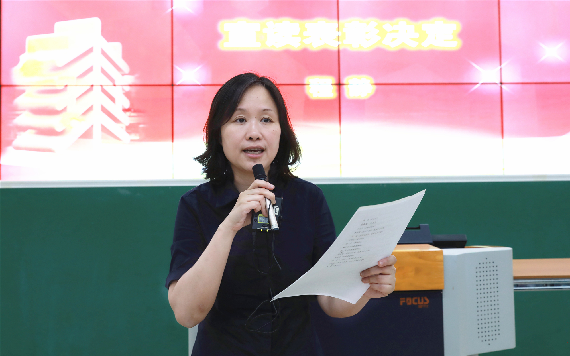 校党委常委、党委组织部部长程静宣读表彰决定