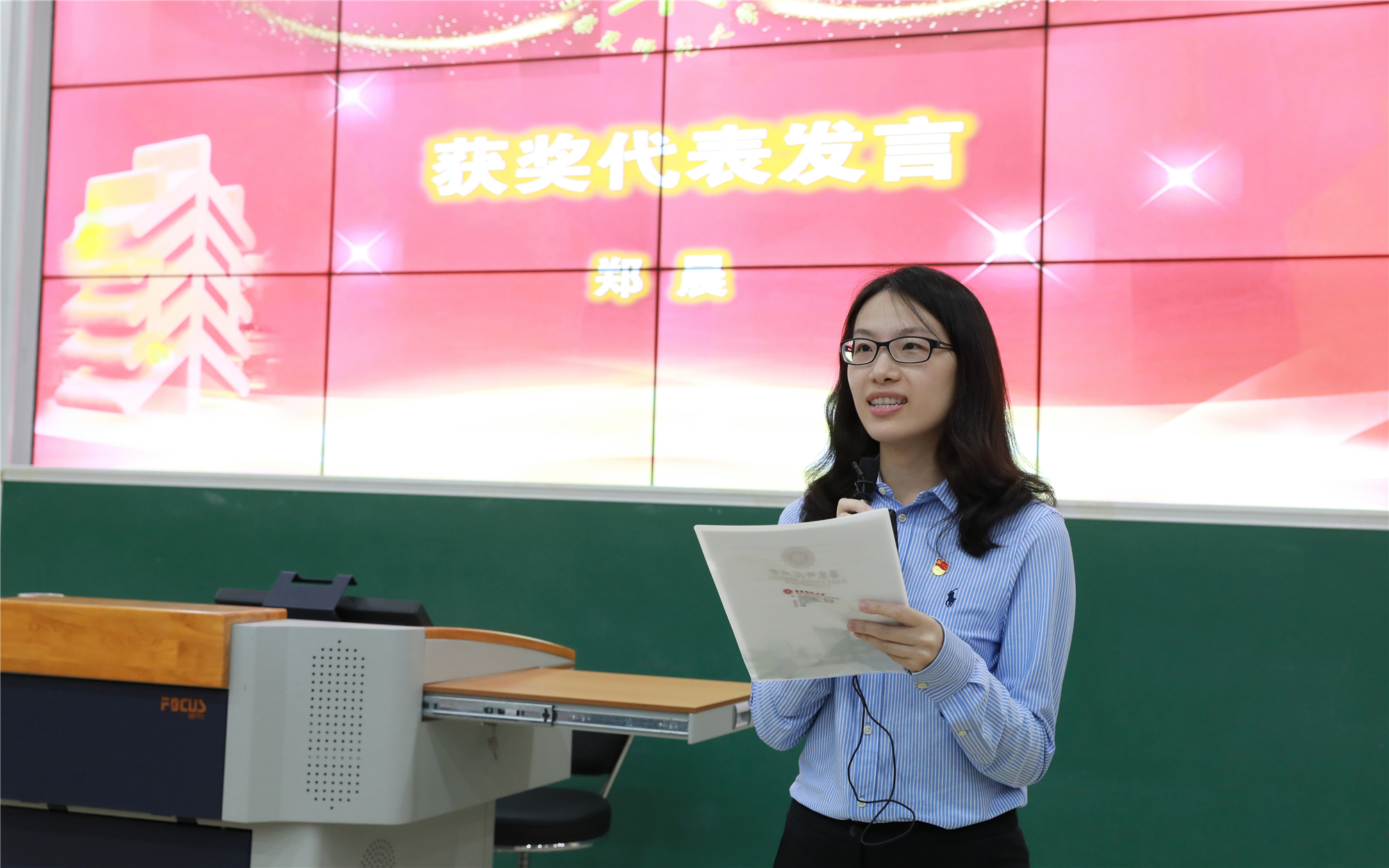 学校办郑晨作为获奖代表发言