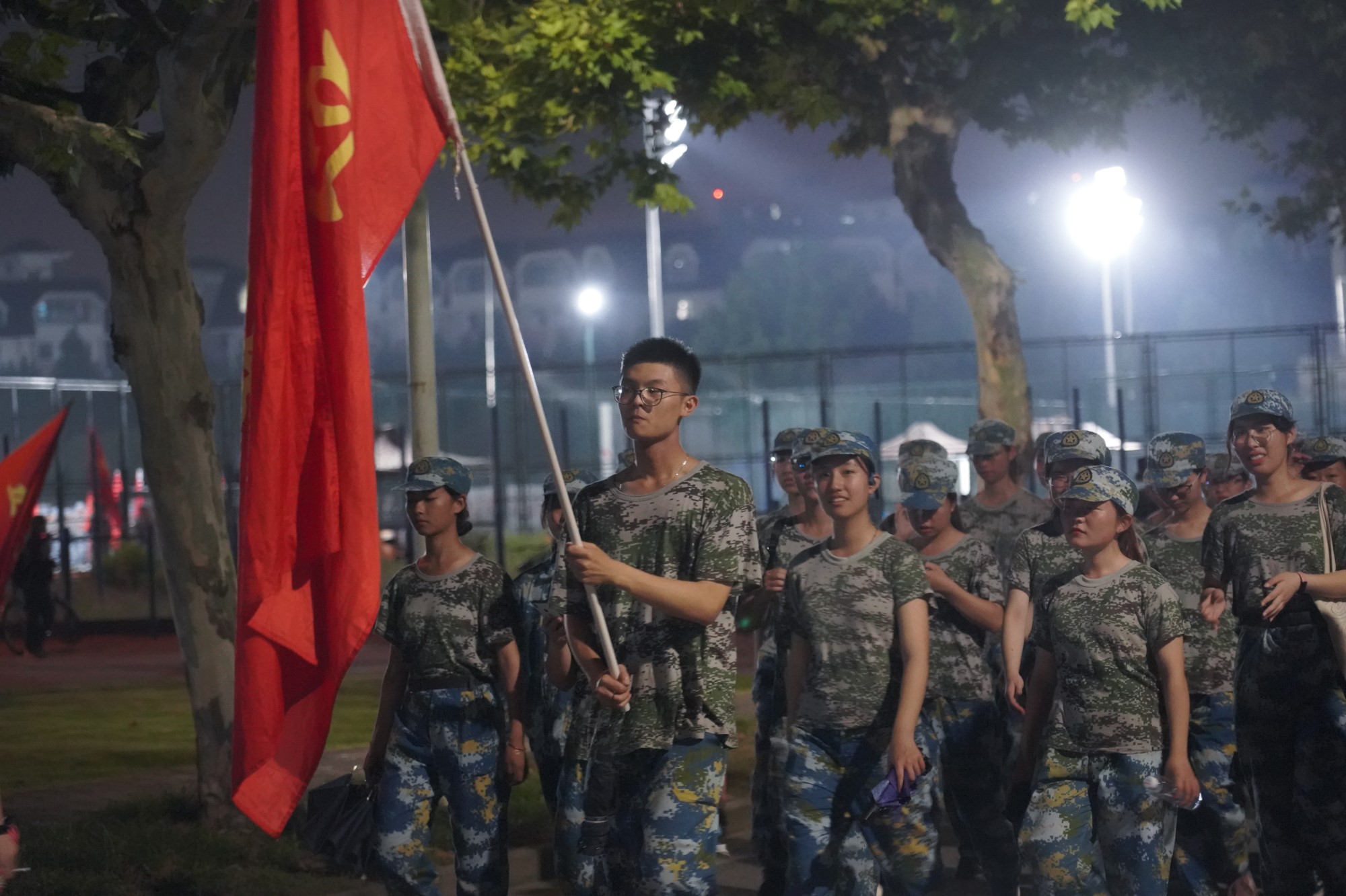 8月27日晚8点半,华东师大闵行校区西操场上,两个小时的军训合唱比赛彩排刚结束,一阵急促的号角声又响起。16个连2600名参训学生迅速整队、清点人数、行前动员……短短几分钟,就在西操场集结完毕,准备出征校园夜间行军。“开进!”随着指挥员一声令下,同学们的带领下,豪情万丈、气势如虹,迈上了行军之路。