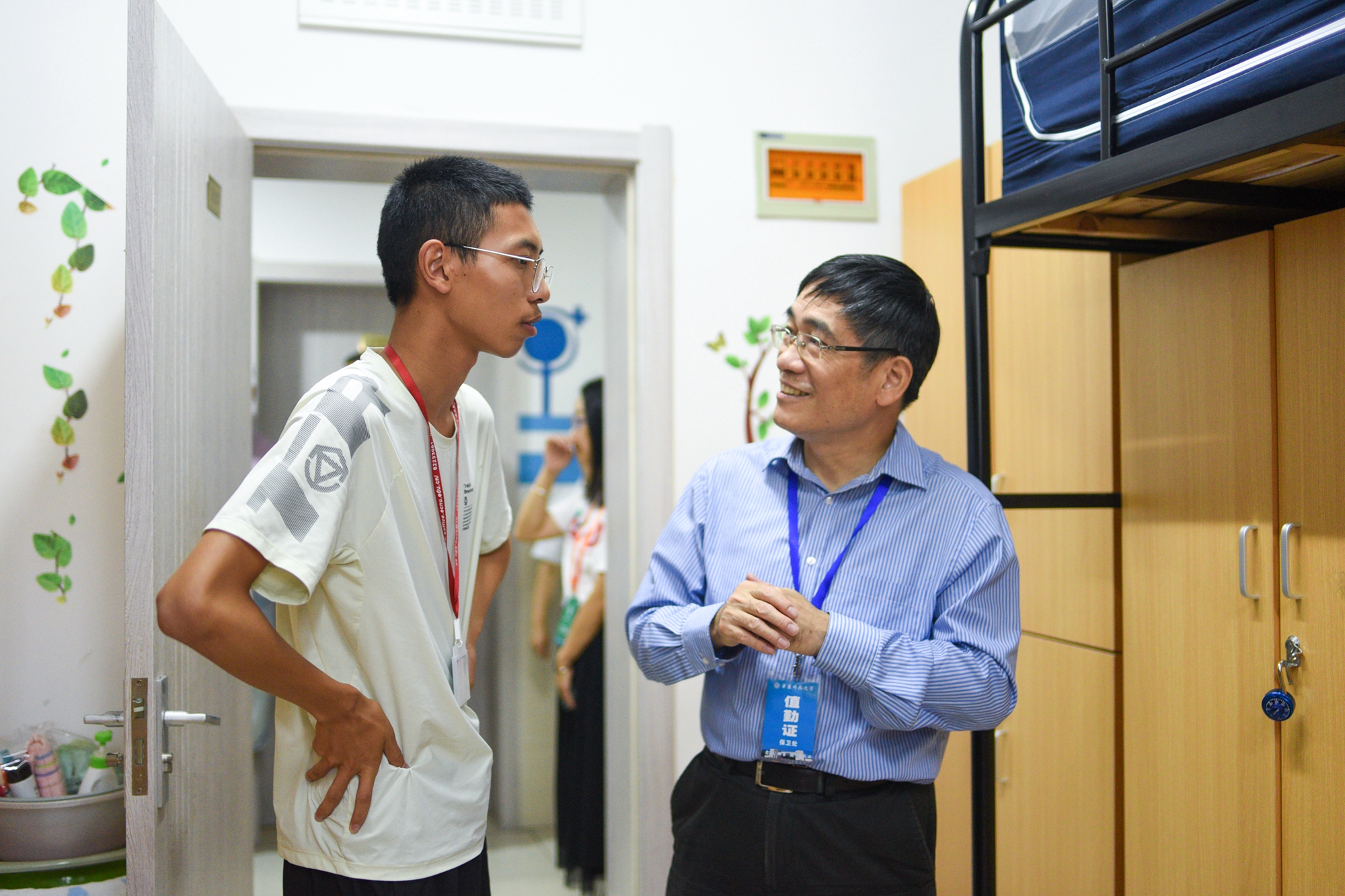 校领导童世骏、钱旭红、朱民、王宏舟、杨昌利、曹友谊、孙真荣、梅兵、李志斌、周傲英、戴立益等来到迎新现场、服务窗口和学生宿舍,慰问参与迎新工作的师生,看望新生及其亲友们。