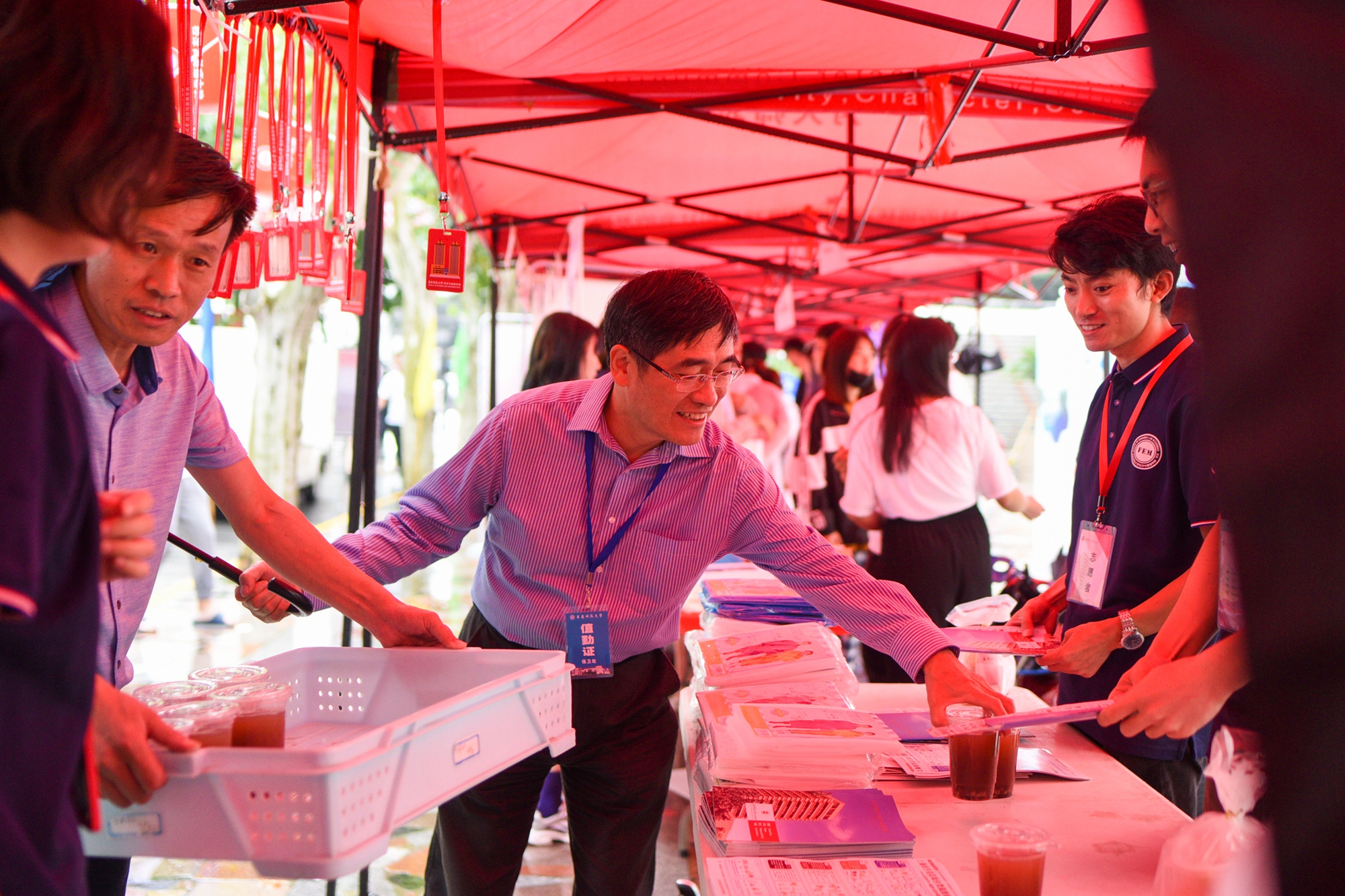 校领导慰问参与迎新工作的师生,看望新生及其亲友们