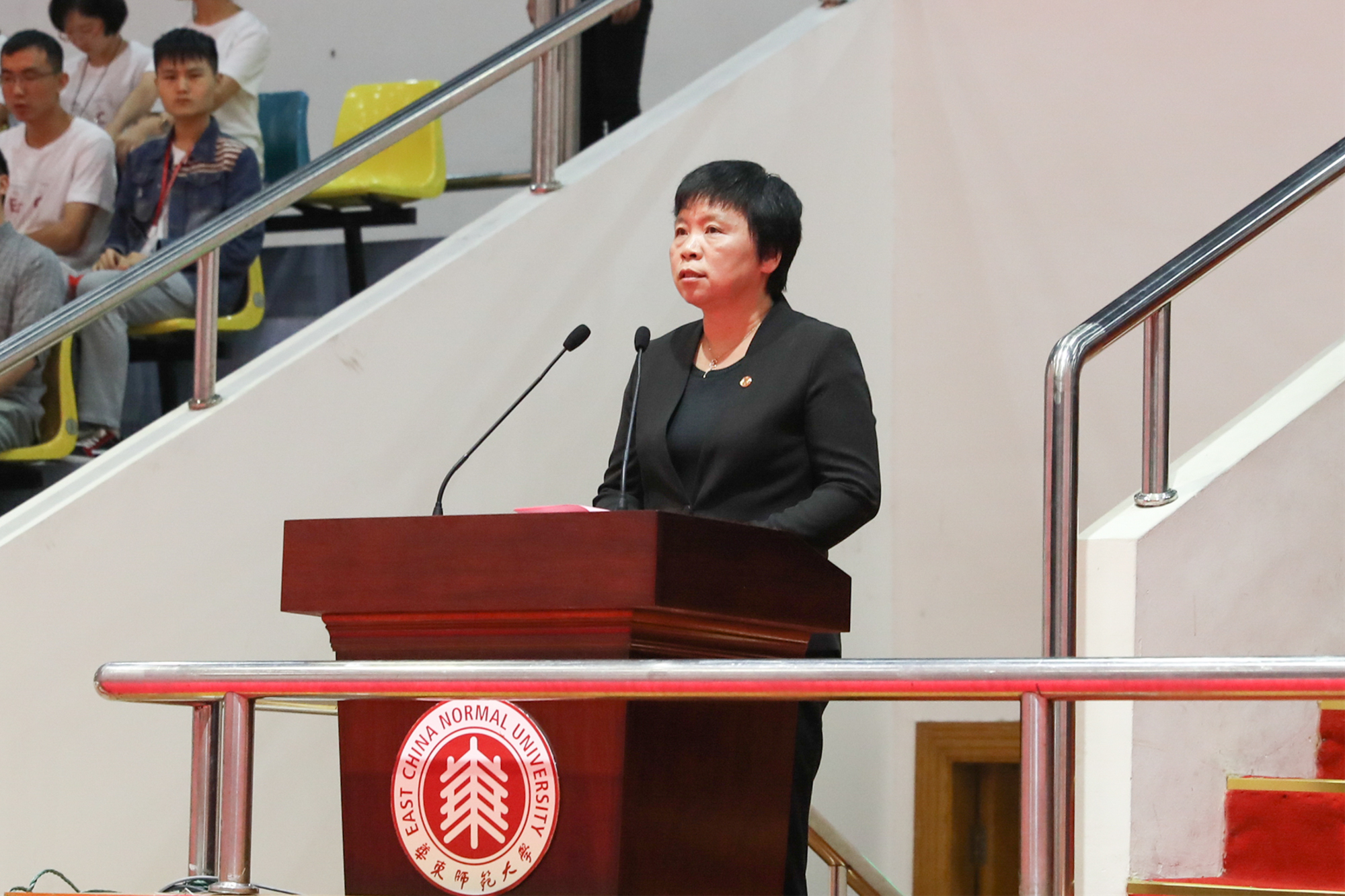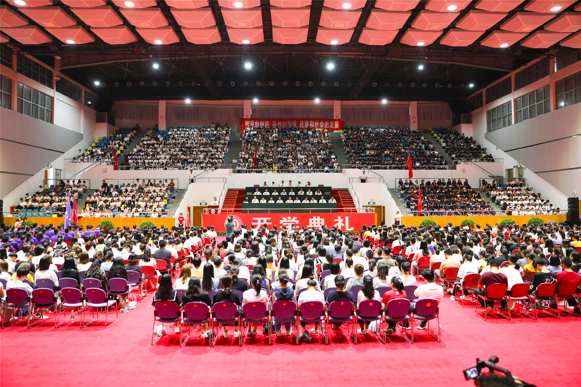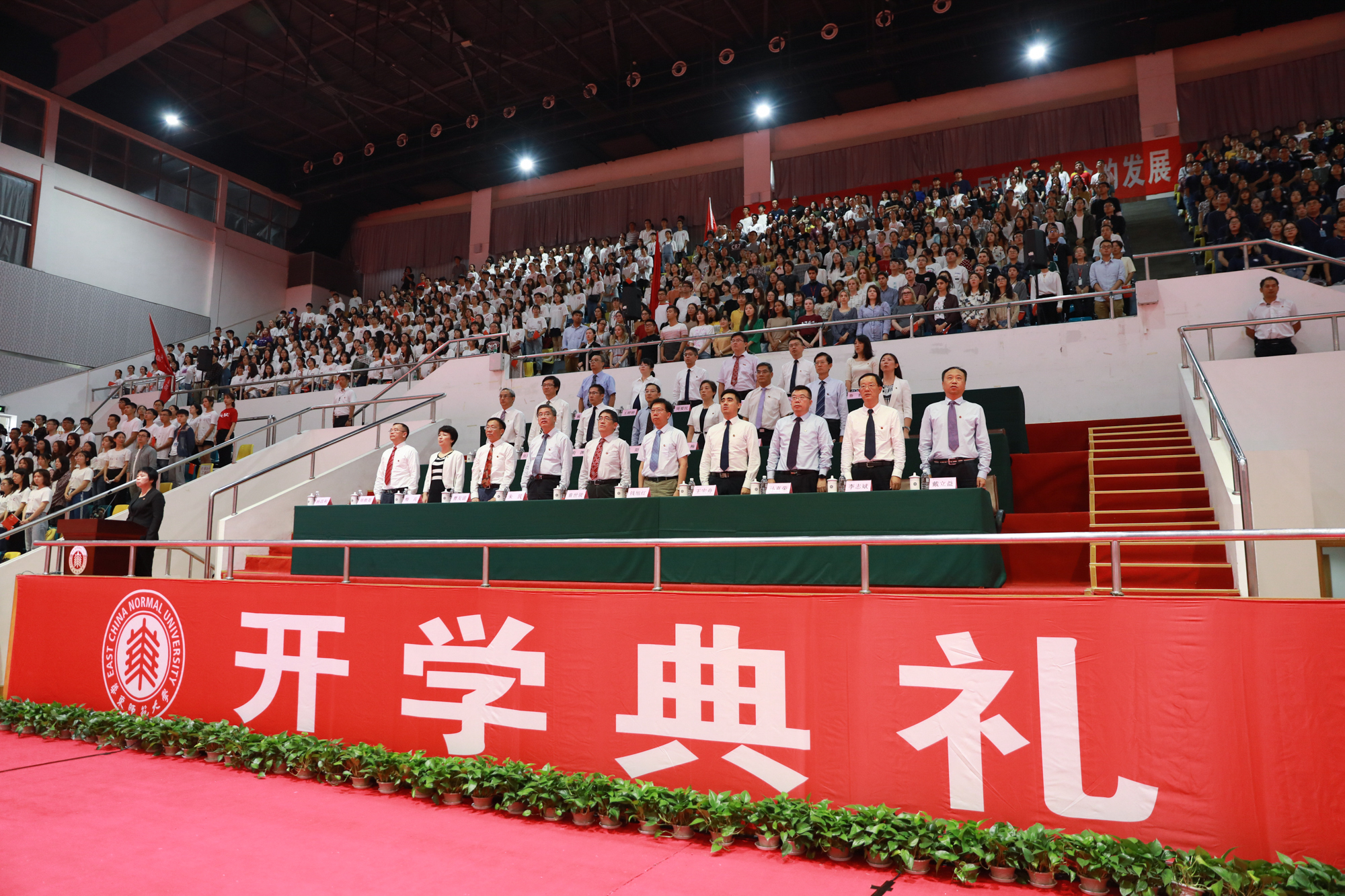 当天,开学典礼分别在华东师大闵行校区东田径场、中山北路校区体育馆举行。10254名来自全国和世界各地的优秀学子,在此开启大学生活新征程。校领导童世骏、钱旭红、朱民、王宏舟、杨昌利、曹友谊、孙真荣、梅兵、李志斌、周傲英、戴立益,校长助理雷启立、斯阳,各学部院系负责人及教师代表等出席。典礼由校党委副书记杨昌利主持。
