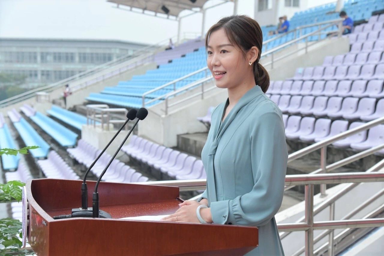 物理与电子科学学院2019级本科生丁又也作为新生代表发言