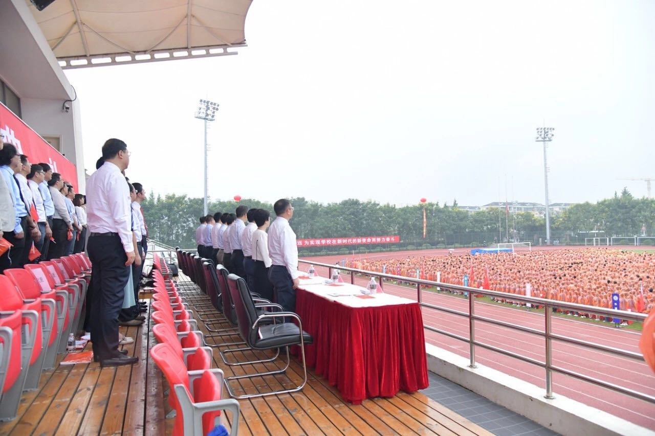 2019级新生开学典礼在庄严的国歌声中正式开始