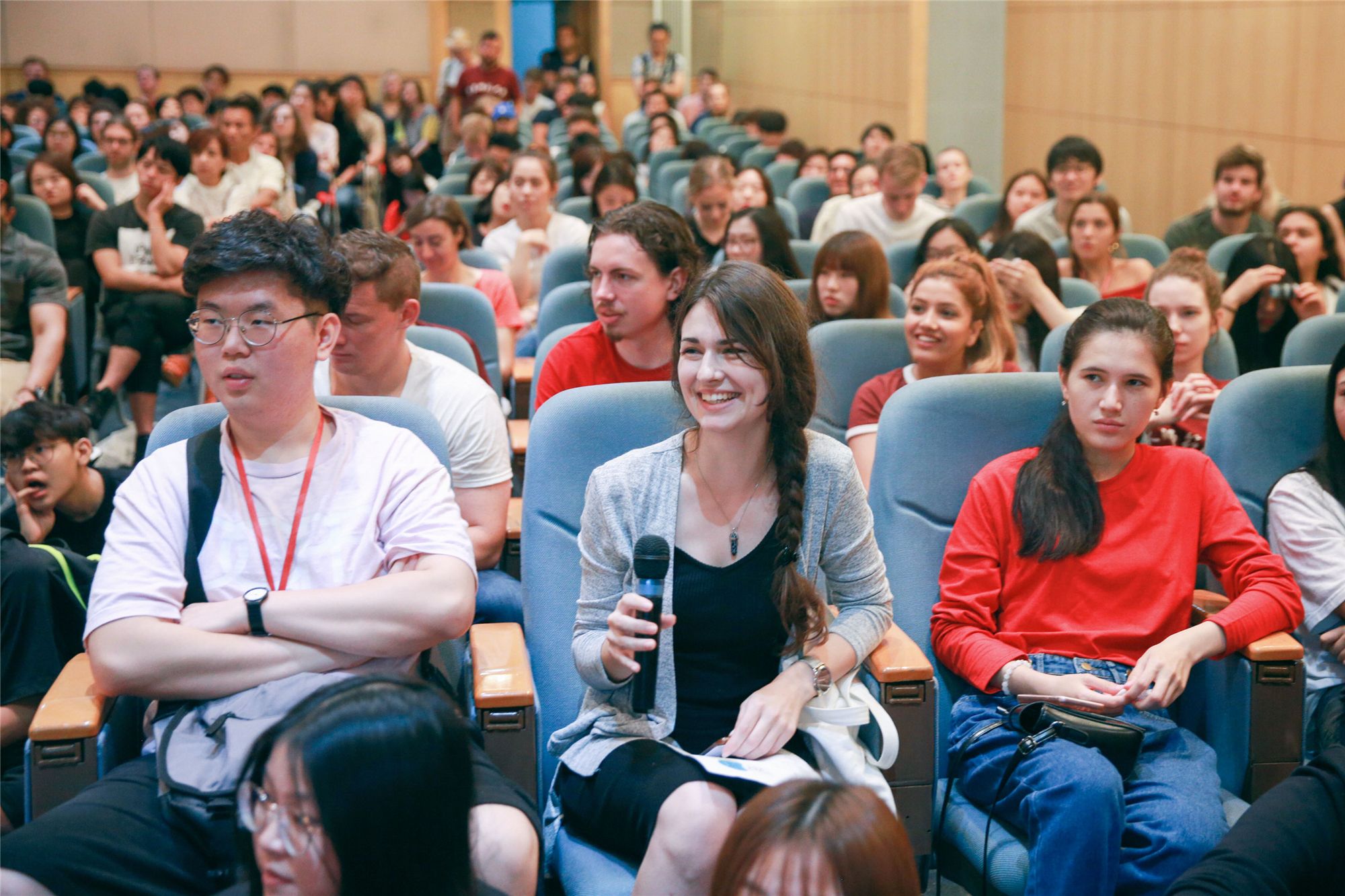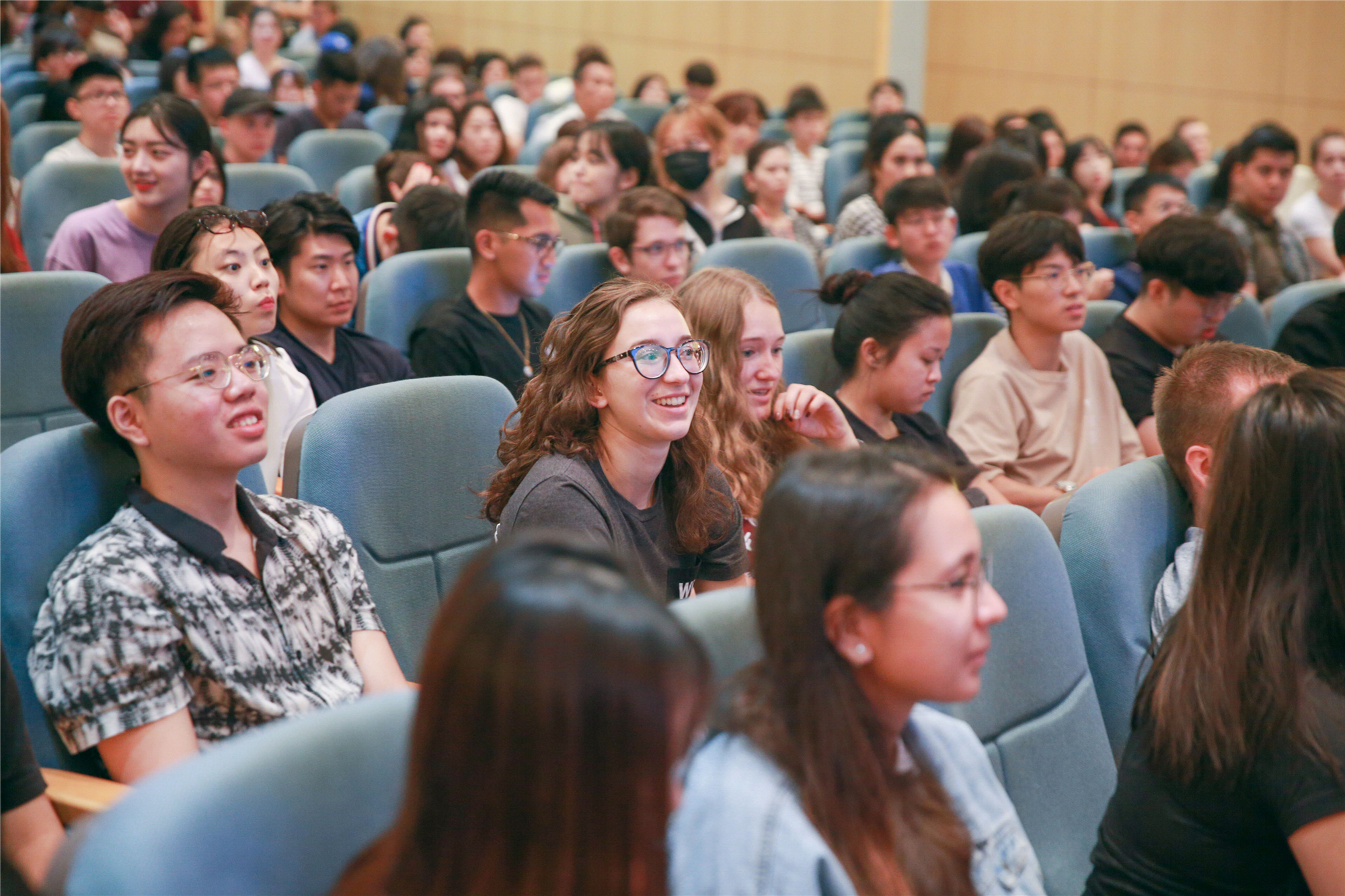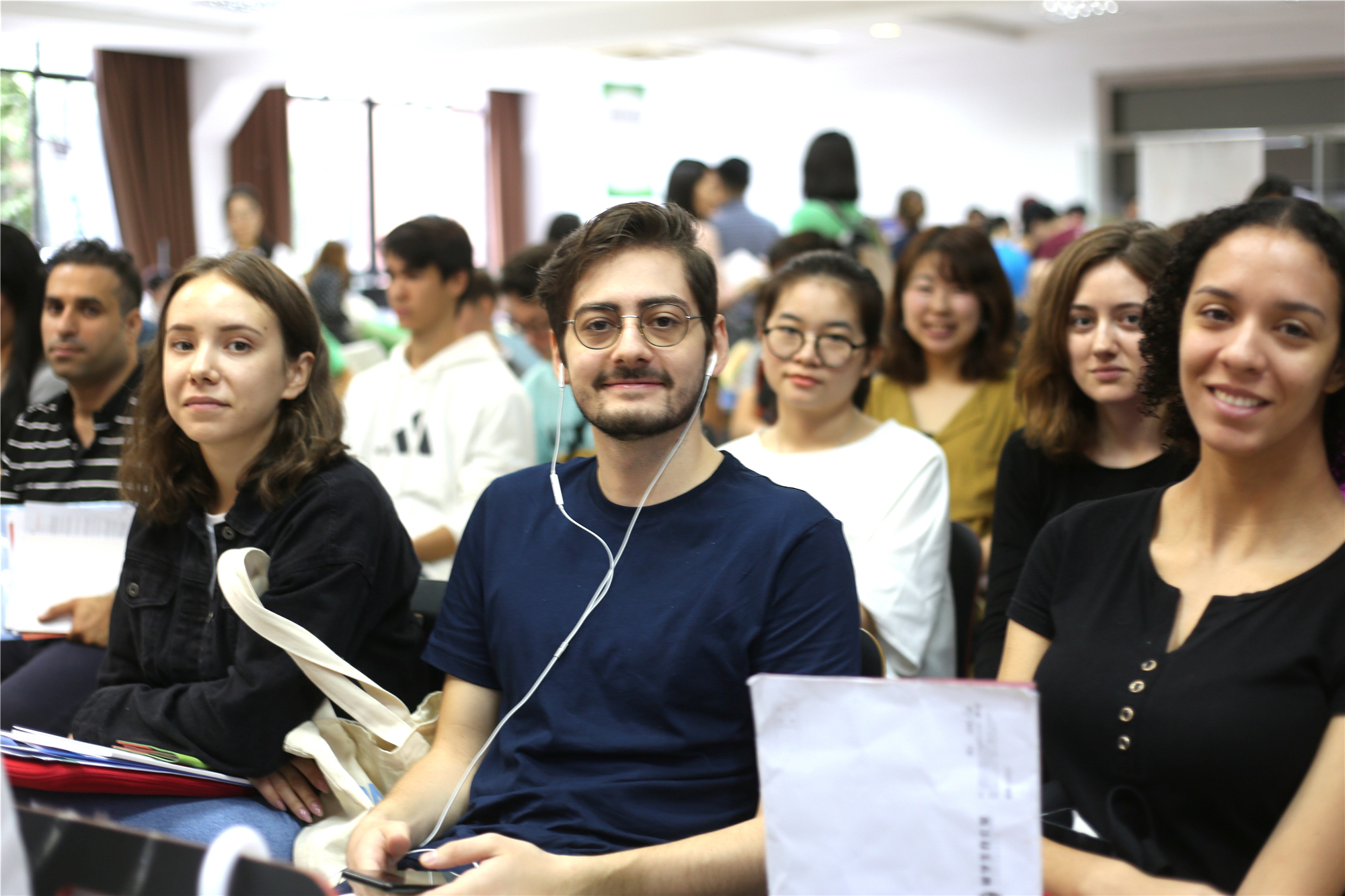 9月6日上午,华东师大2019年秋季学期国际学生新生欢迎仪式在中山北路校区科学会堂举行。尽管当天大雨滂沱,但新生们的热情丝毫未减,1200余名来自世界各地的莘莘学子齐聚一堂,会场内座无虚席,学生们便席地而坐,带着对未来大学生活的美好憧憬,开启了他们崭新的留学生活。