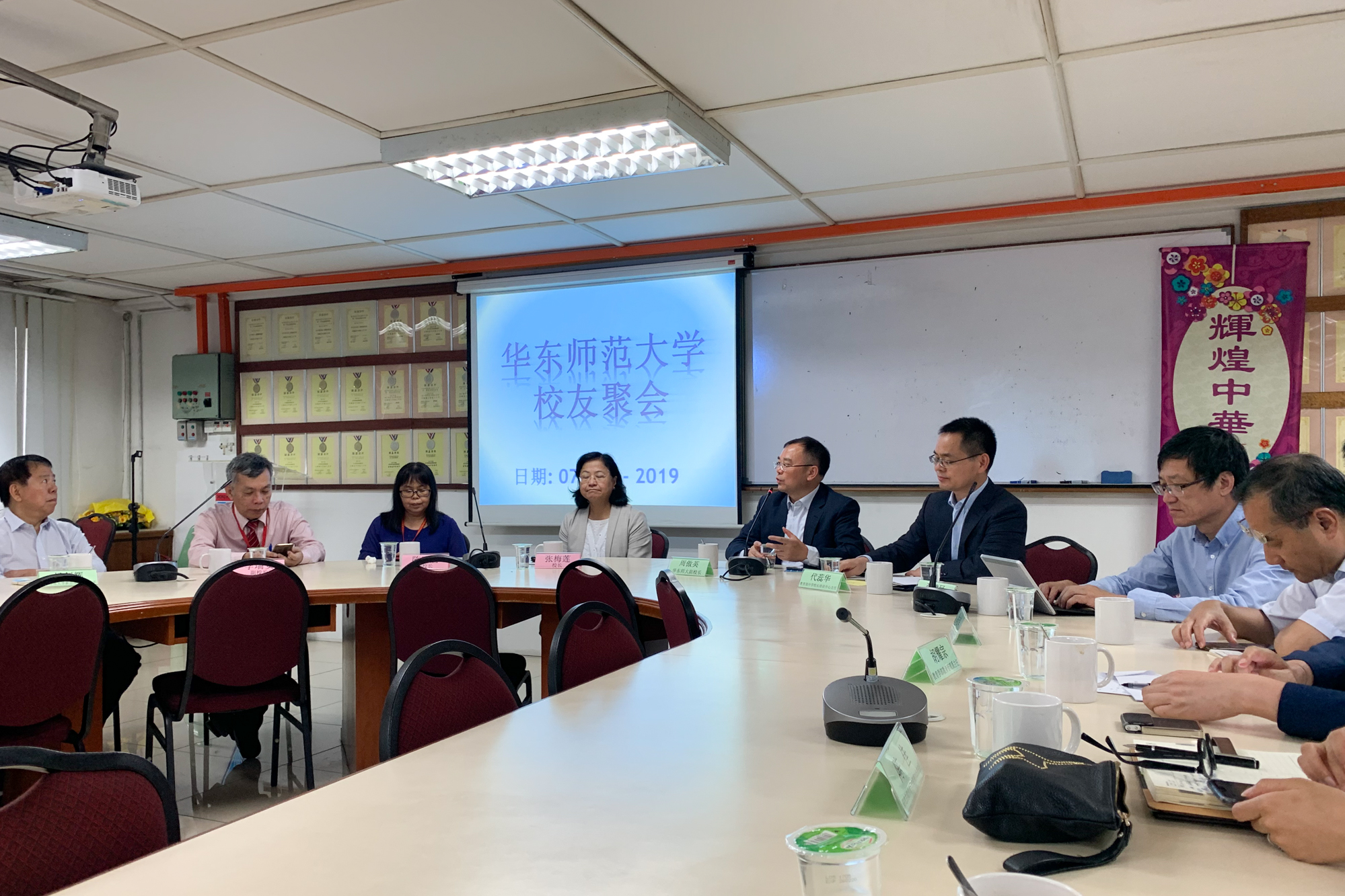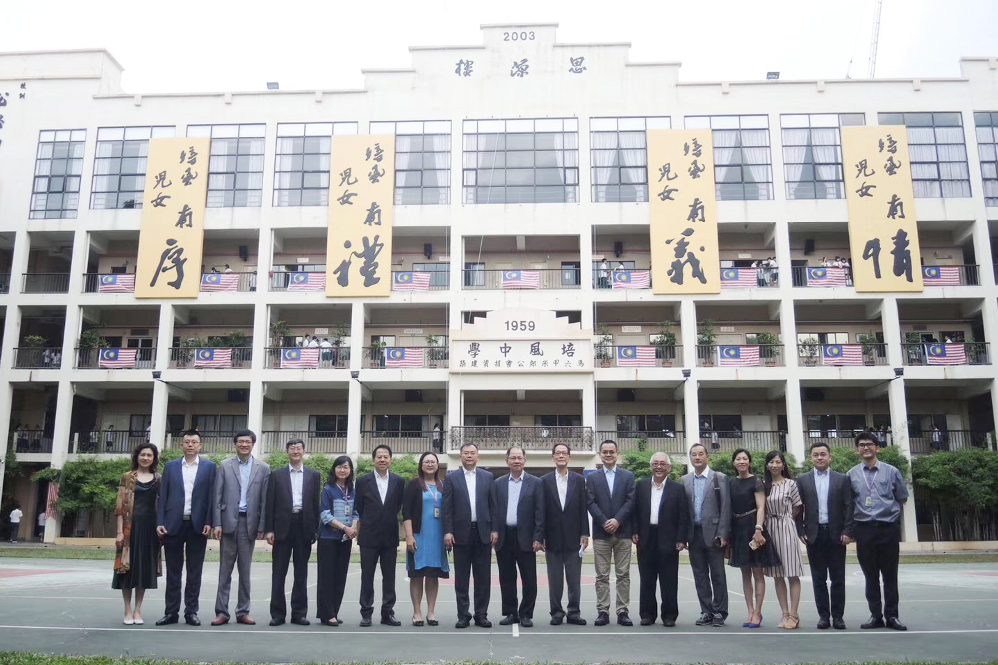 5日起访问马来西亚期间,在我校新加坡校友会会长杨剑辉的陪同下,代表团先后赴马六甲培风中学及孔子课堂,吉隆坡坤成中学、中华中学及马来西亚华人董事联合会总会(董总),沙巴亚庇建国中学、崇正中学、沙巴中华大会堂等八处,就教育硕士(马来西亚教学点项目)、马来西亚华文独中校长领导力提升研习班项目、马来西亚华文独中“教育专业文凭课程”项目、华东师大马来西亚校友会筹建事宜等展开研讨。访问各处,代表团受到马六甲培风中学董事会副董事长萧汉昌、柯世聪及总务曾昭明、校长黄雪莱等,吉隆坡坤成中学校长蔡莉莉等、中华中学校长张梅莲等,董总主席陈大锦等,亚庇建国中学校长邬恒亮等、崇正中学董事长杨菊明等、古达培正中学董事长王喜等,沙巴中华大会堂总会长丹斯里拿督斯里邦里玛吴添泉局绅博士等的热情接待。