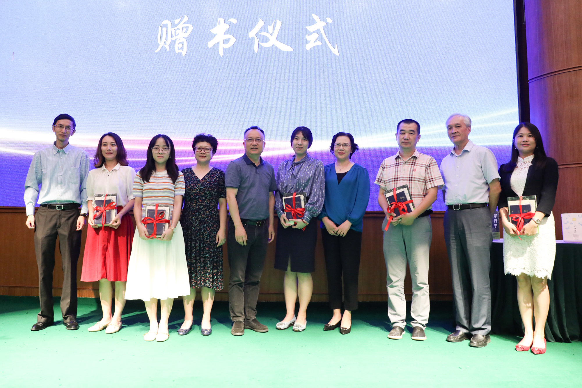 会上,成尚荣、雷启立、王焰、房建军、李政涛共同向青年教师代表赠送于漪、成尚荣、李政涛三位专家新著。
