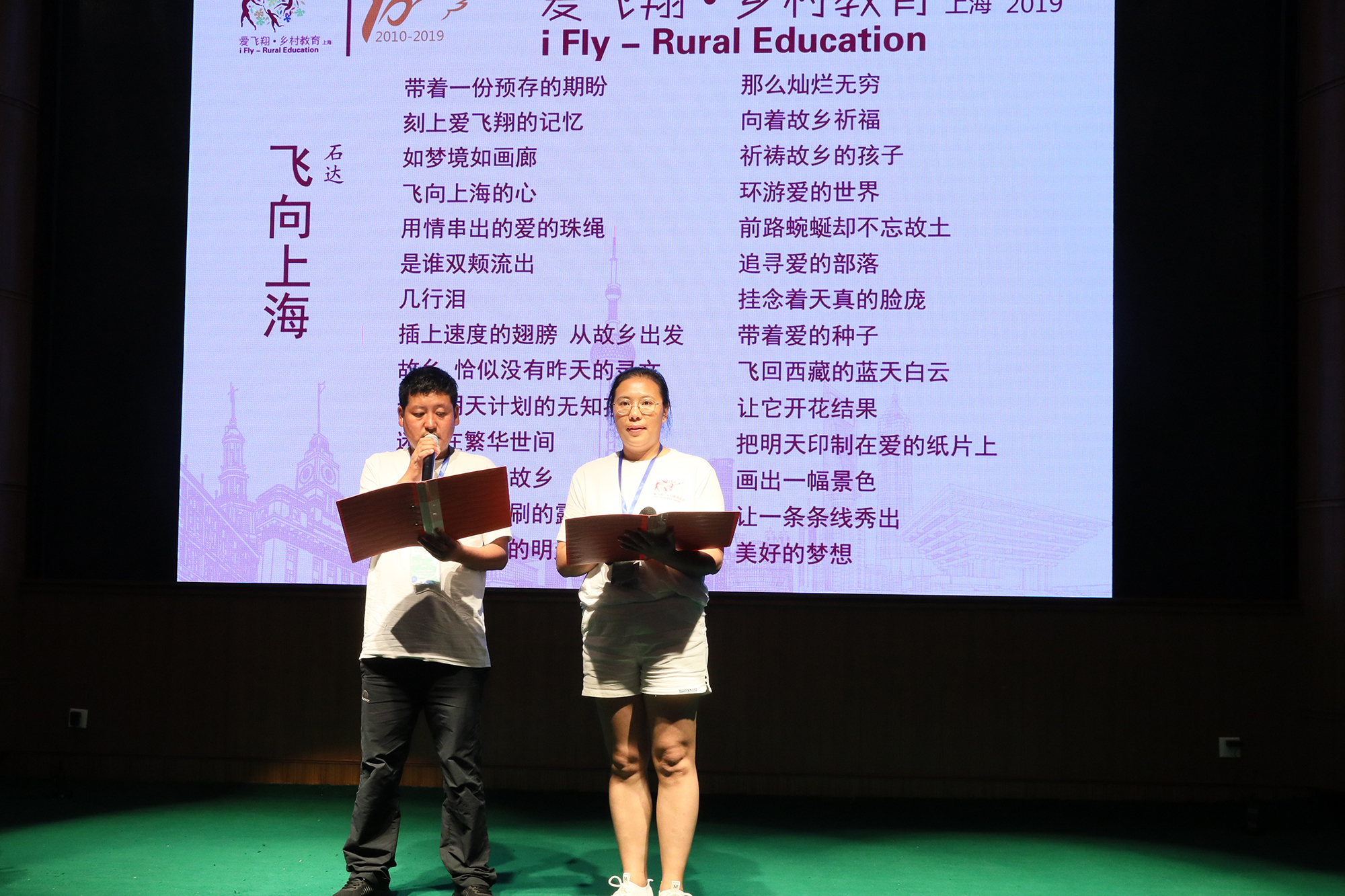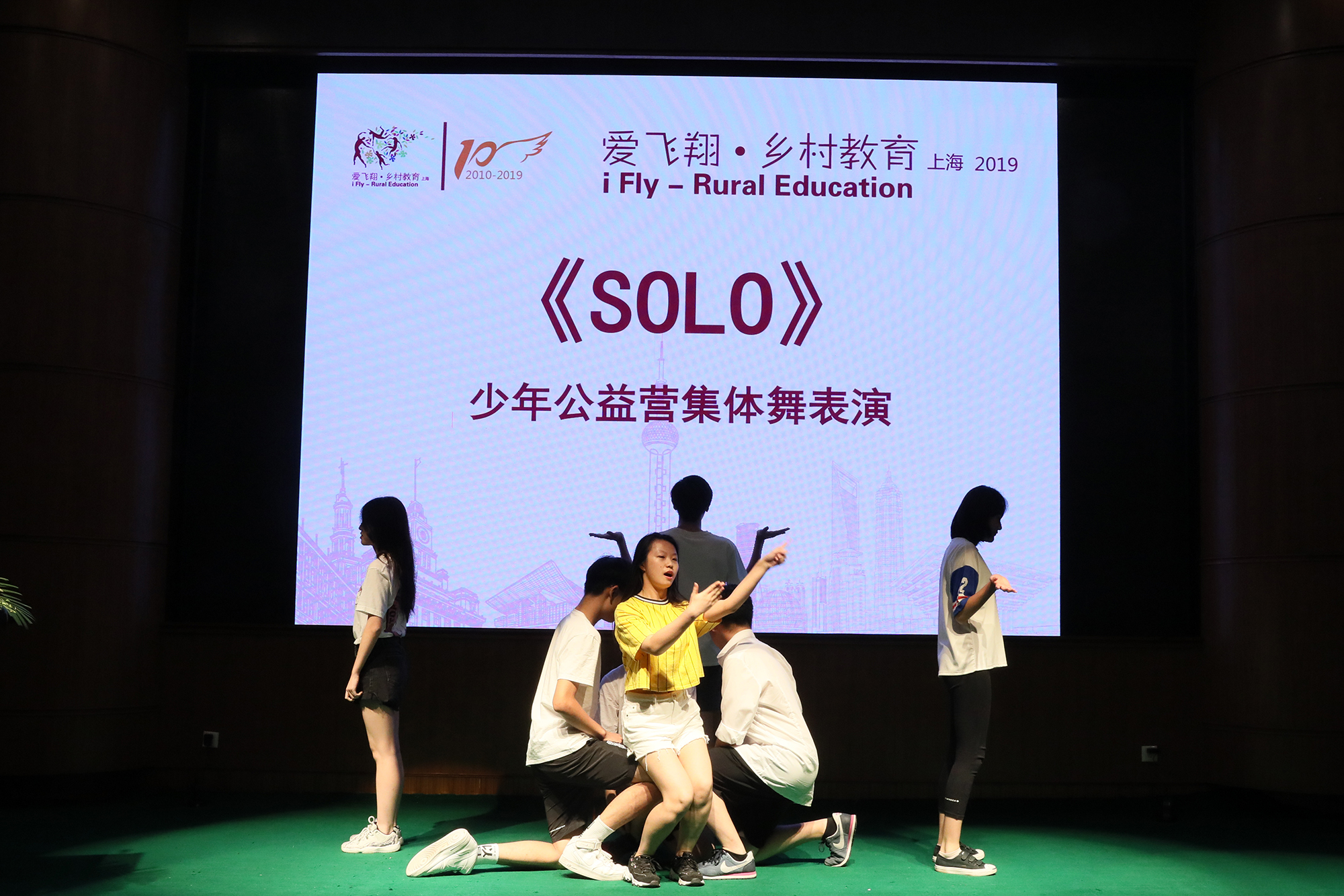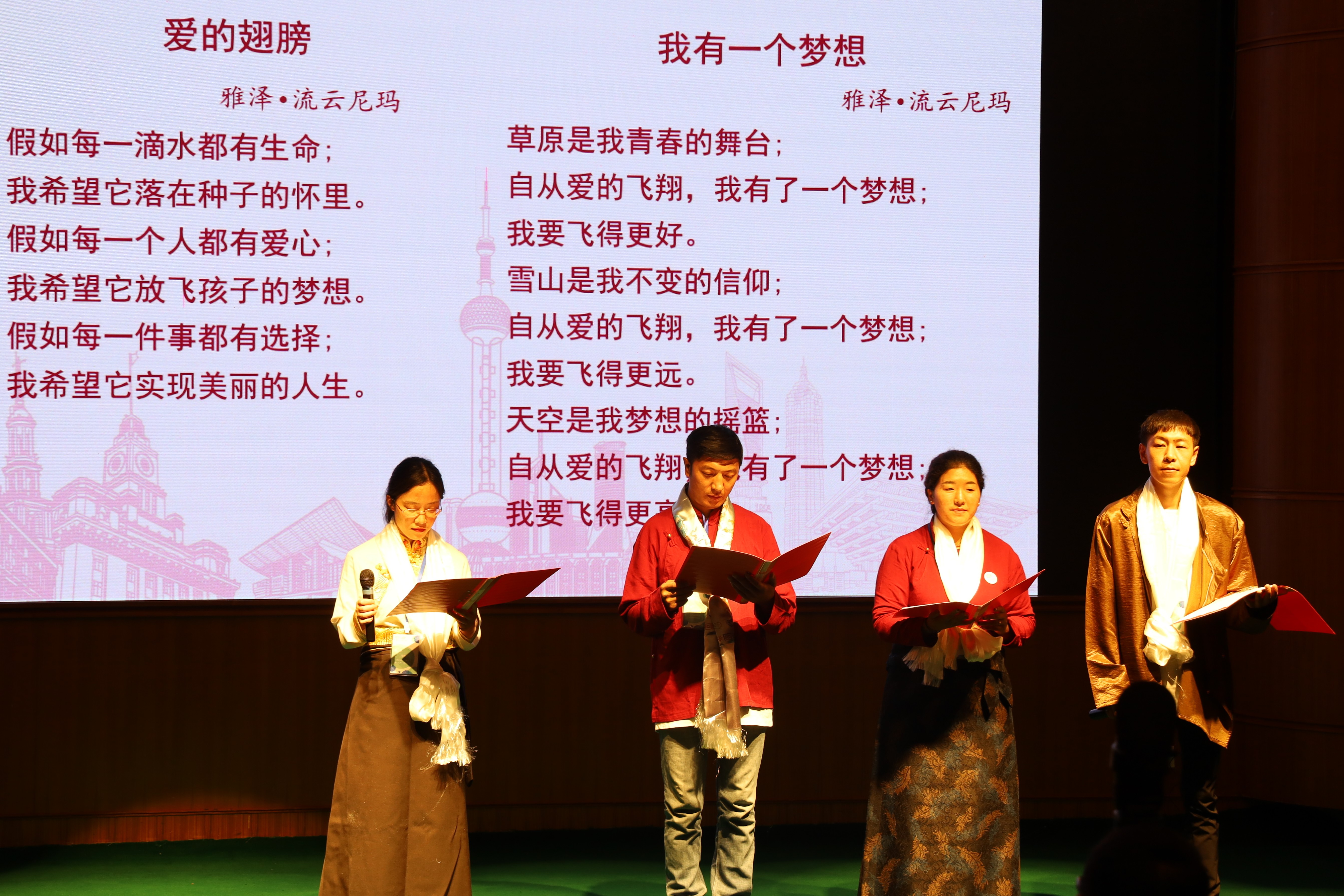 老师们在现场表演民族歌曲、诗歌朗诵,表达他们的激动和感谢之情。西藏老师们献给“爱飞翔”上海组委会的画作中,藏语和汉语对照的“爱飞翔,一起飞”,道出了老师们对“爱飞翔”的不舍与留恋。随后,少年公益营也为大家带来了集体舞表演《SOLO》。