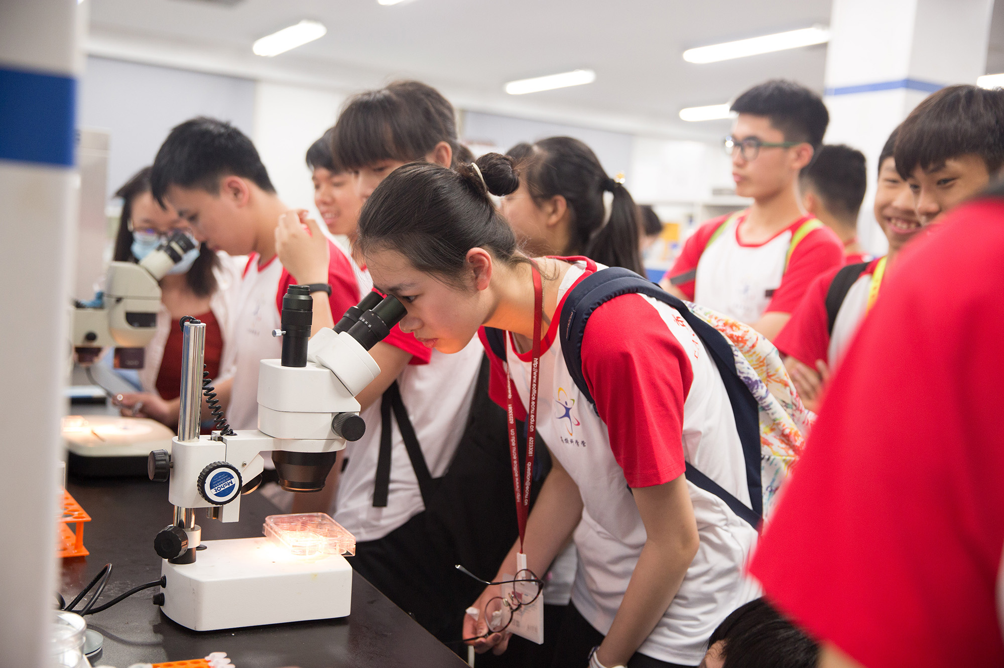 7月8日至14日,青少年高校科学营3245澳门新莆京分营举行,来自上海、香港、澳门、山西、湖南、青海、江苏、新疆、广西、陕西等地的185名优秀高中生和14位带队教师,齐聚华东师大闵行校区,展开了为期一周的科学探索与体验之旅。