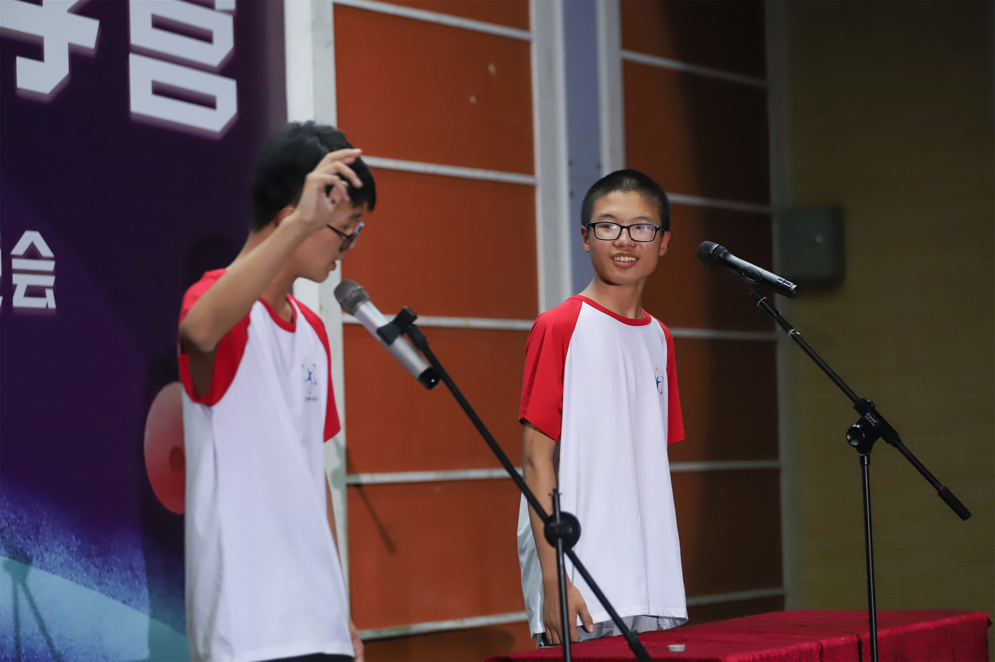 来自各地、分属各个学科组的营员们给大家带来了精彩纷呈的节目。朗诵《致青春》,将青春的拼搏与朝气化成声情并茂的诵读,铿锵有力,慷慨激昂,展现了当代青年人的风采。相声《选节目》,一捧一逗,配合默契,一段带有肉夹馍味道的rap,带大家领略了陕西的特色方言和风土人情。广播剧《垃圾分类我先行》,再现了上海市民自觉进行垃圾分类的日常,“你是什么垃圾”“干果皮再干也是湿垃圾,湿纸巾再湿也是干垃圾”……一句句俏皮的话语,给营员们上了一节生动的垃圾分类科普课。合唱《十年》和《不说再见》,将即将分别的不舍之情娓娓道来,饱含深情,令人动容。全员表情包的视频引得现场尖叫连连,营员们看着视频中成为表情包的自己与同伴,纷纷笑弯了腰。最后,来自港澳的师生和内地的师生合唱粤语歌曲《拥抱爱》和《海阔天空》,营员、带队老师和志愿者们相拥在一起,身体随着旋律摇摆,唱出了年轻一代披荆斩棘、乘风破浪的气势,观众们也被感染,挥舞着手中的荧光棒,一起合唱,把晚会推向高潮。