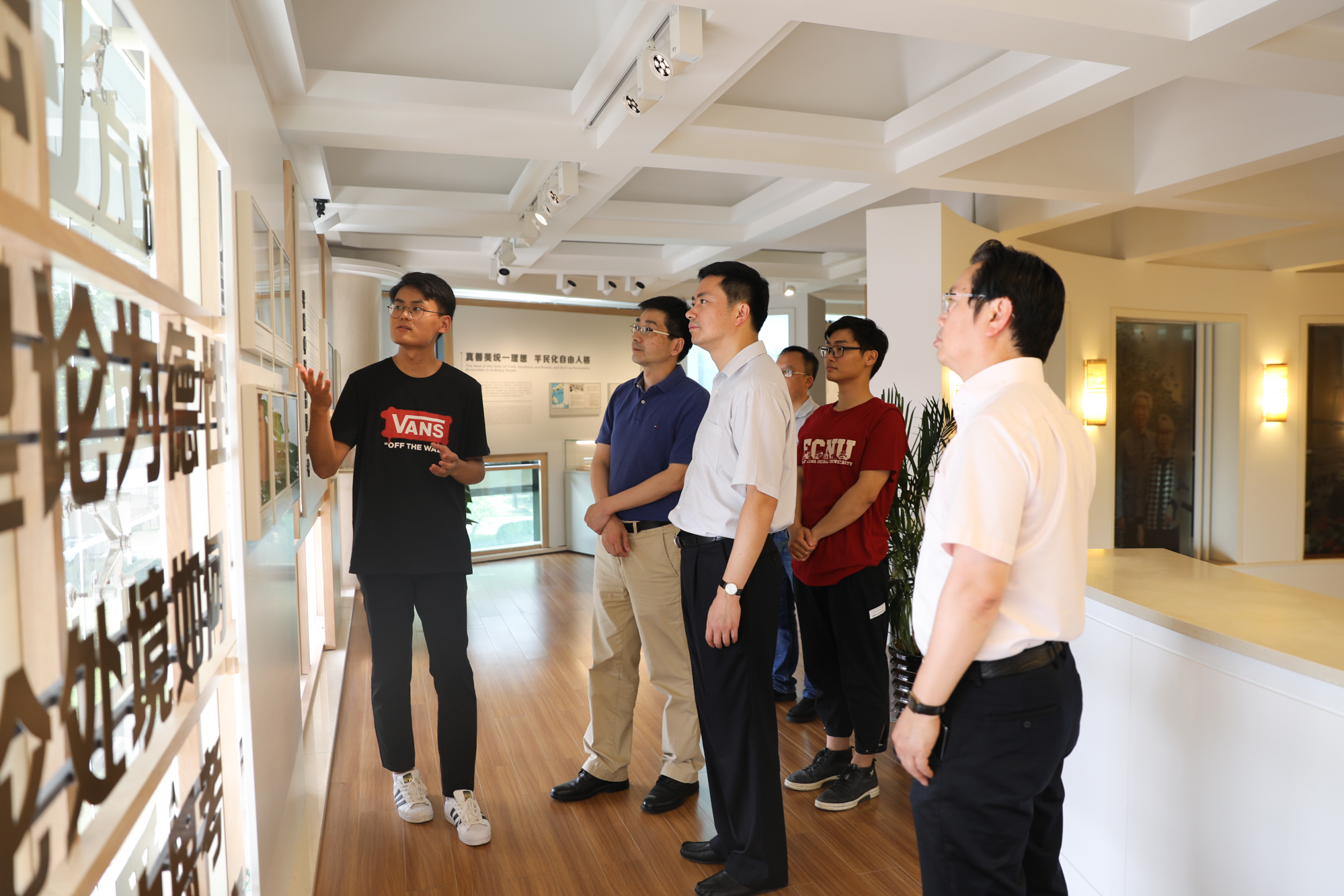 座谈会前,李昕等一行到马克思主义学院和哲学家冯契学术成就陈列室实地调研,考察马克思主义学院的办公、教学、图书资料等场地,了解学校近年来思政工作的举措和成绩。