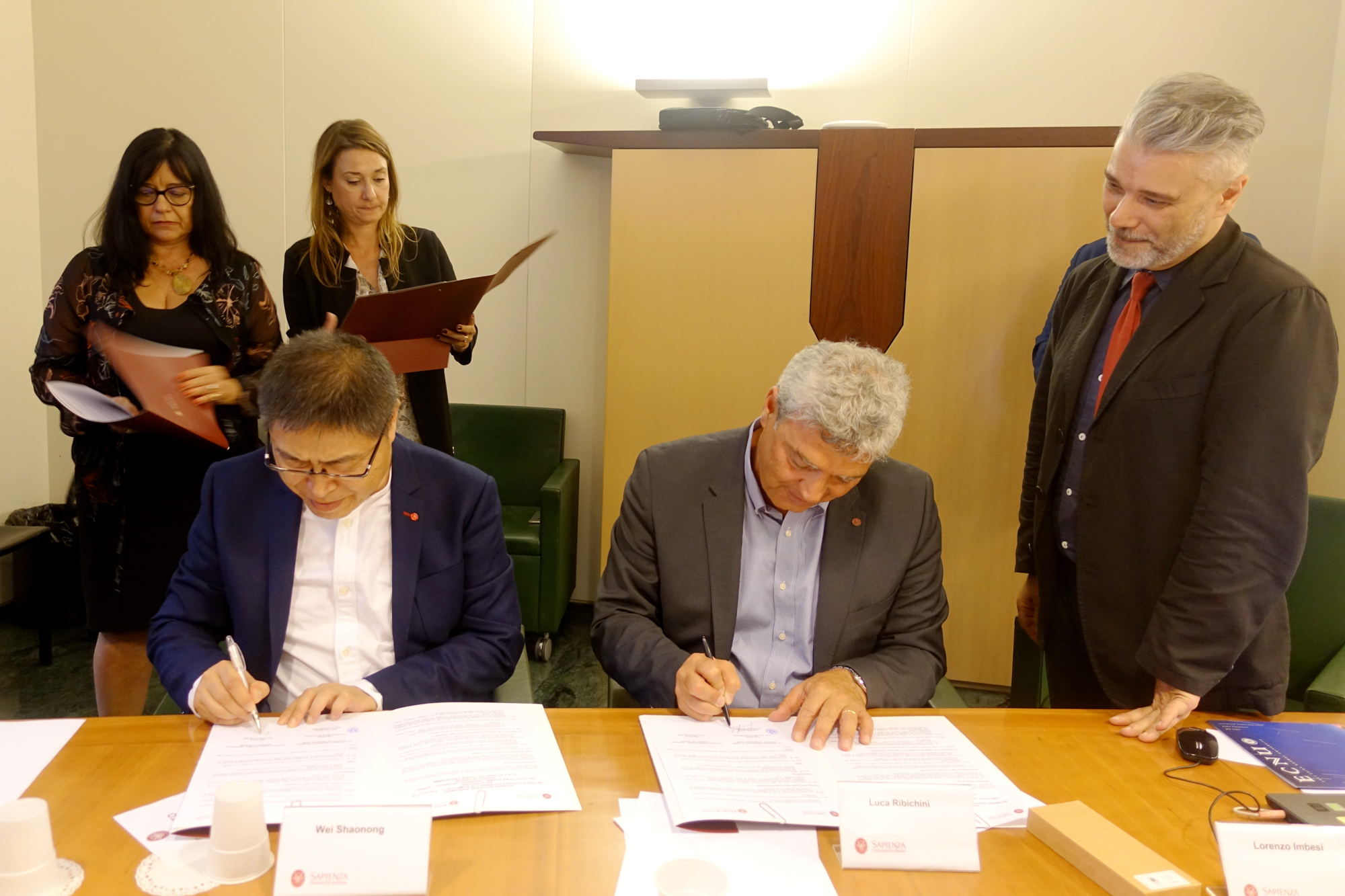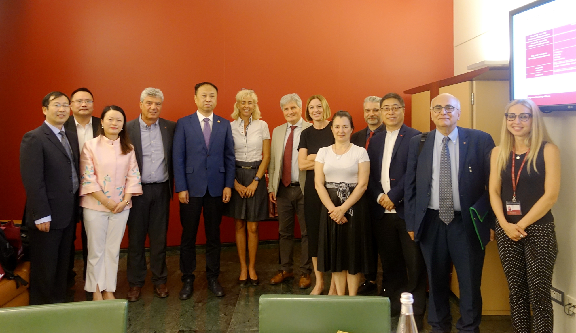 访问意大利期间,代表团先后访问了罗马大学与米兰新美术学院罗马校区。其中,戴立益一行会见了罗马大学国际事务副校长Bruno Botta、科研与基础设施设备事务副校长Maria Sabrina Sarto,该校设计研究所所长Lorenzo Imbesi、建筑学院副院长Luca Ribichini等参加本次会谈。戴立益首先肯定我校与罗马大学近年来的学术交流合作,表示华东师大是一所以教师教育为发展特色的综合性研究型高等学府,具有国际化视野与发展使命,愿与有着同样价值取向与建设理念的罗马大学一道,在双方都有所建树的教育、艺术、音乐等领域开展可持续的长期合作交流。他同时指出,希望两校搭建的合作交流平台为双方师生创造更多机遇,让更多师大学者学子在承载着欧洲历史与文化积淀、享有世界之都美名的罗马开展学习研究,也欢迎罗马大学师生在历史与现代化发展有机融合的国际化大都市上海感受中国文化的魅力。随后,双方共同签署两校在建筑设计领域的学生交换协议。