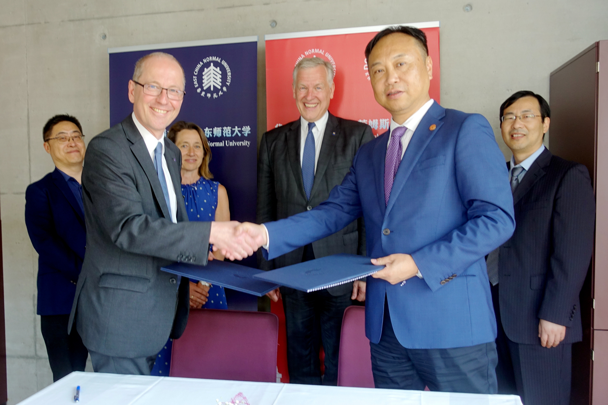 此后,在下奥地利地区政府官员代表Martin Eichtinger的见证下,戴立益与Friedrich Faulhammer共同签署两校教师与行政人员交换协议,旨在为两校教研与行政管理人员搭建合作交流的平台,互学互鉴,实现共同成长与发展。据悉,该交换将作为两校间首个实质性合作项目于年内正式启动遴选,计划于明年春季实现人员互换。访问期间,在校长Friedrich Faulhammer的引荐下,戴立益一行还与毗邻克莱姆斯多瑙大学的克莱姆斯应用科学大学代表围绕高校国际化发展座谈交流。