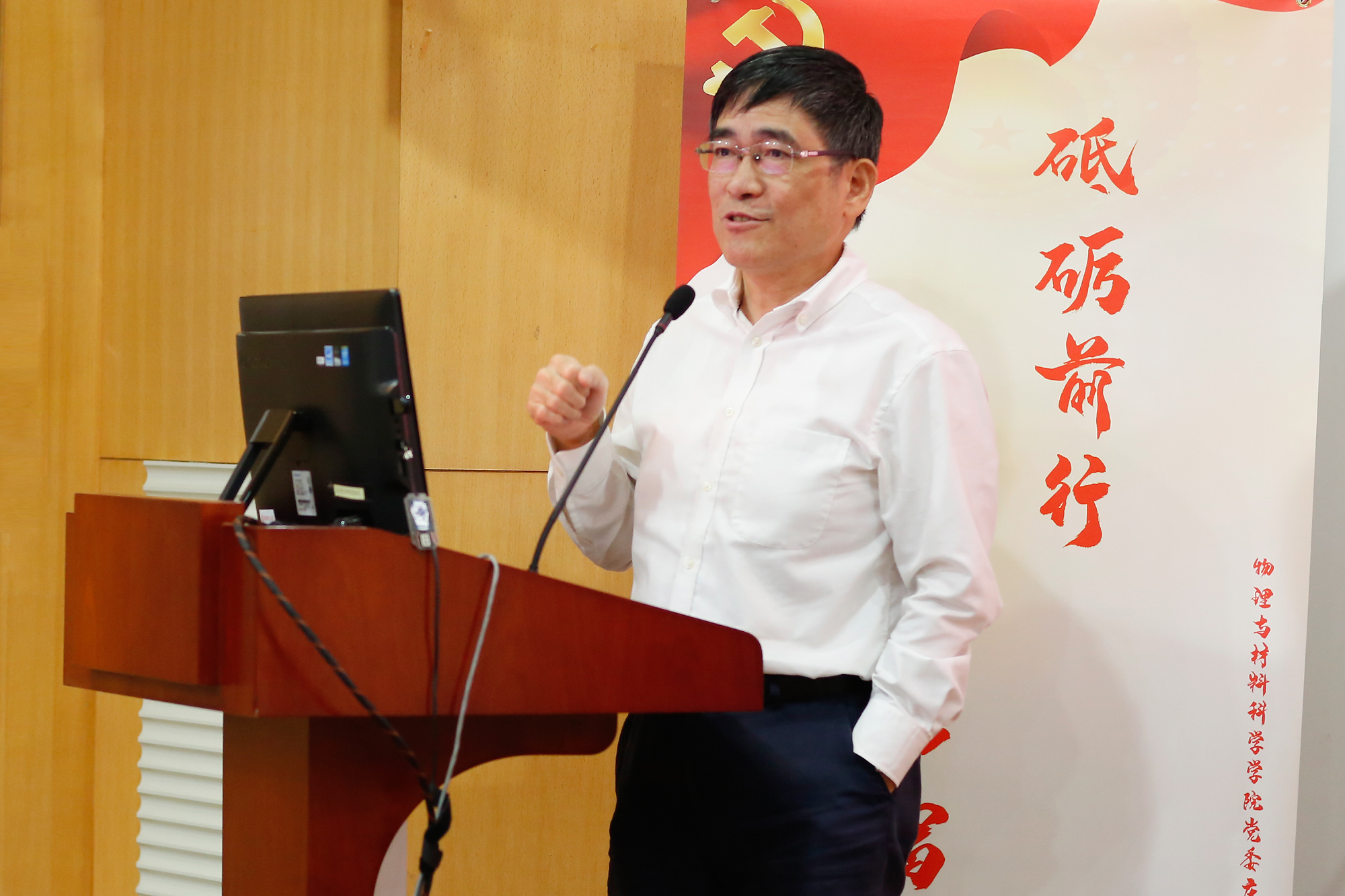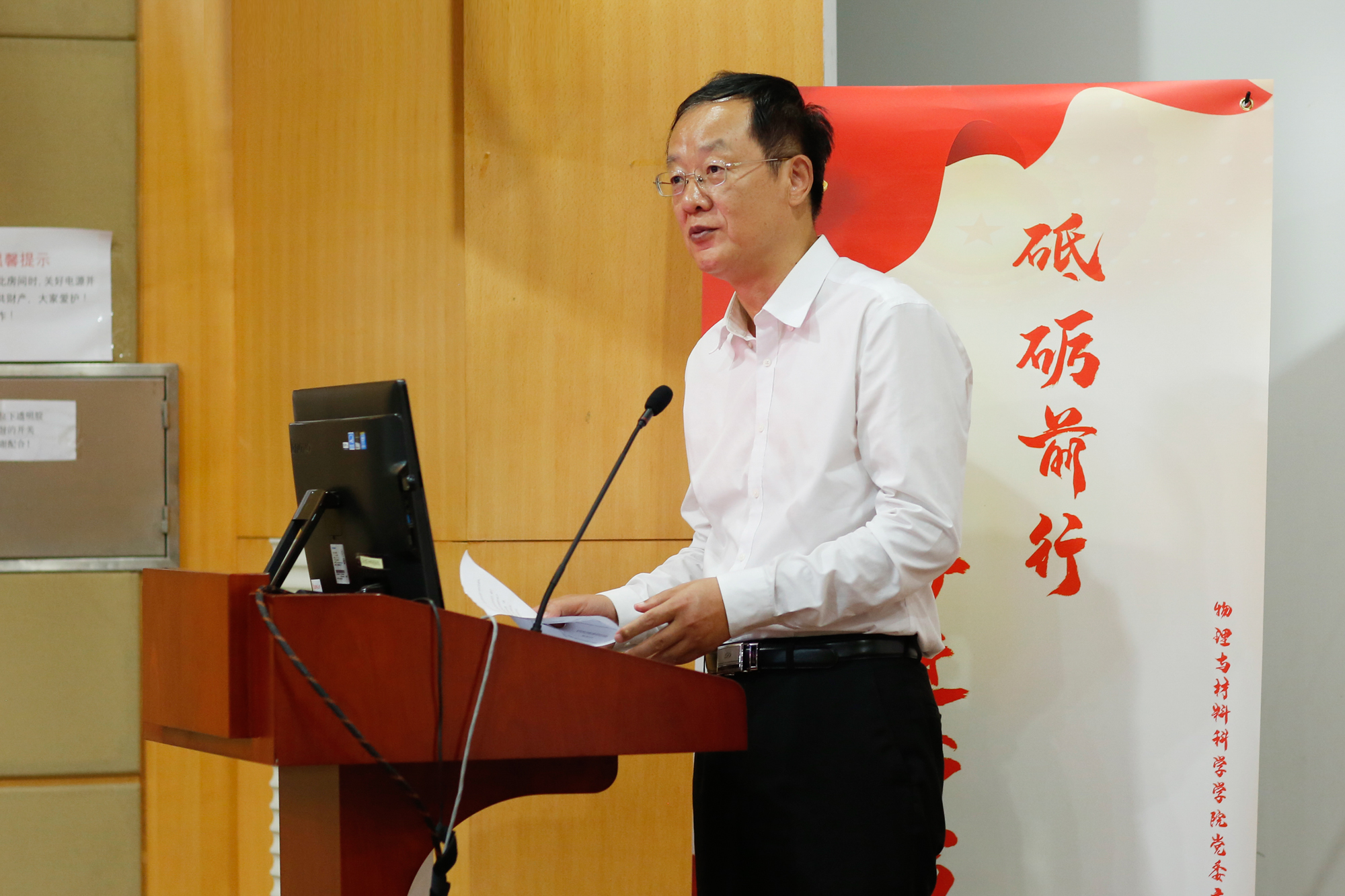 副校长李志斌主持会议并宣读了学校相关通知。为进一步厘清学科关系,增强物理学科的竞争力,学校决定将物理与材料科学学院更名为物理与电子科学学院,中共物理与材料科学学院委员会更名为中共物理与电子科学学院委员会。