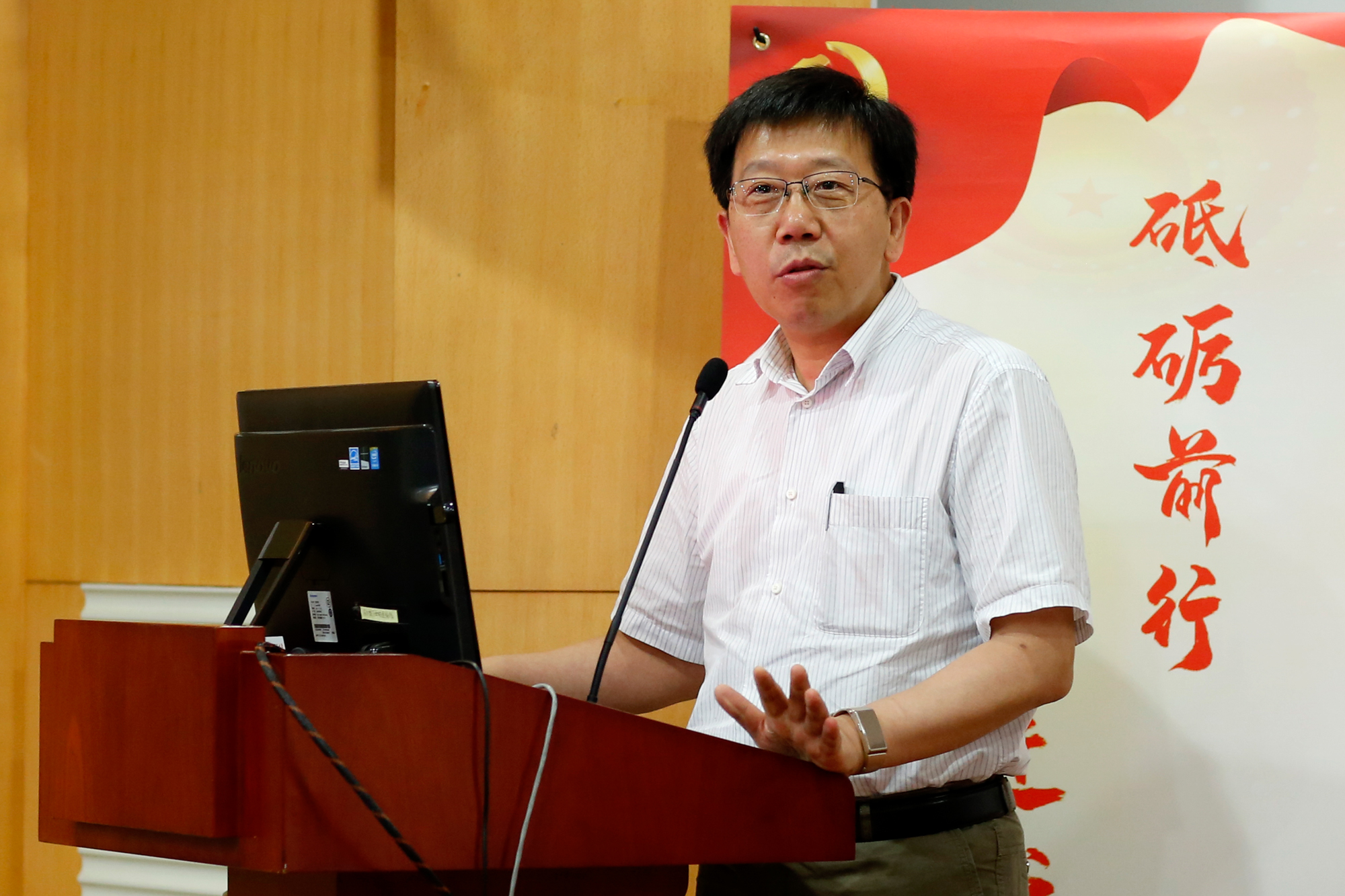 物理与电子科学学院党委书记李恺发言