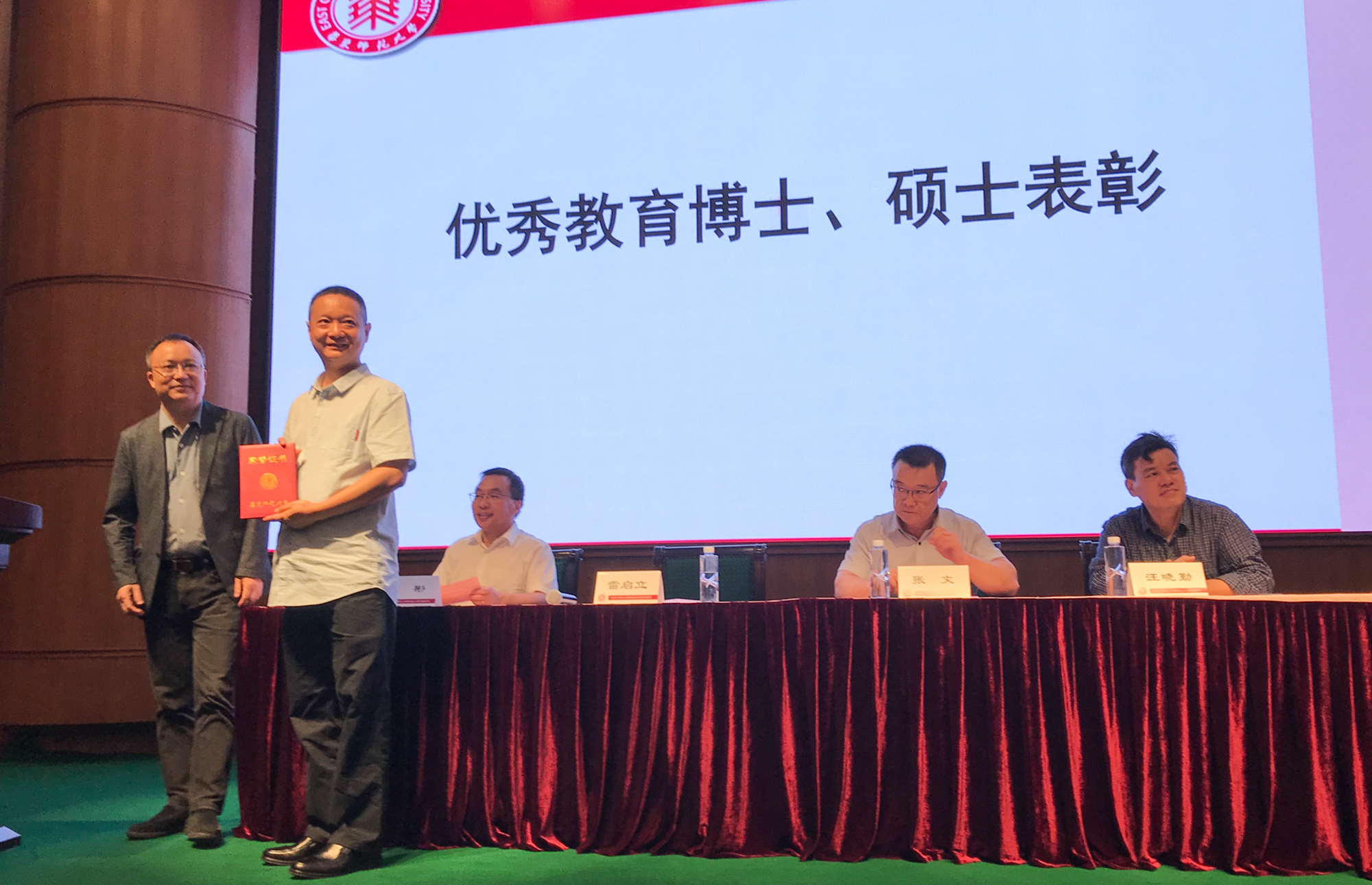 校长助理雷启立为获奖教育博士颁奖