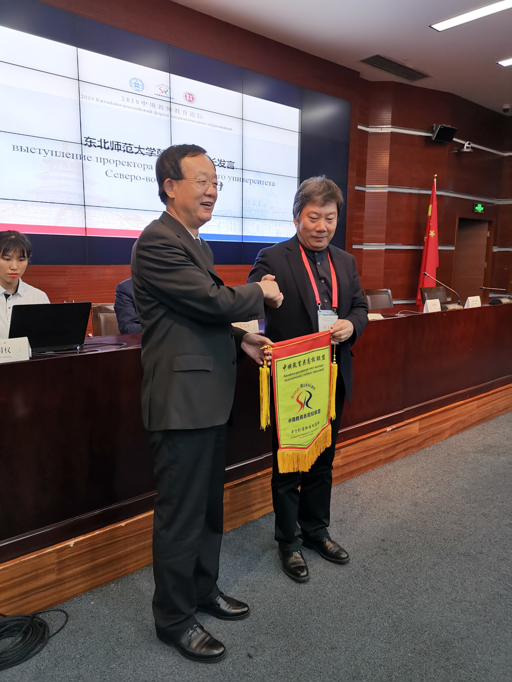 2018年我校是“中俄教育类高校联盟”中方轮值主持单位,在论坛闭幕式上,李志斌将联盟轮值主持单位的旗帜交给了东北师范大学副校长韩东育教授,东北师大是下任联盟中方轮值主持单位。