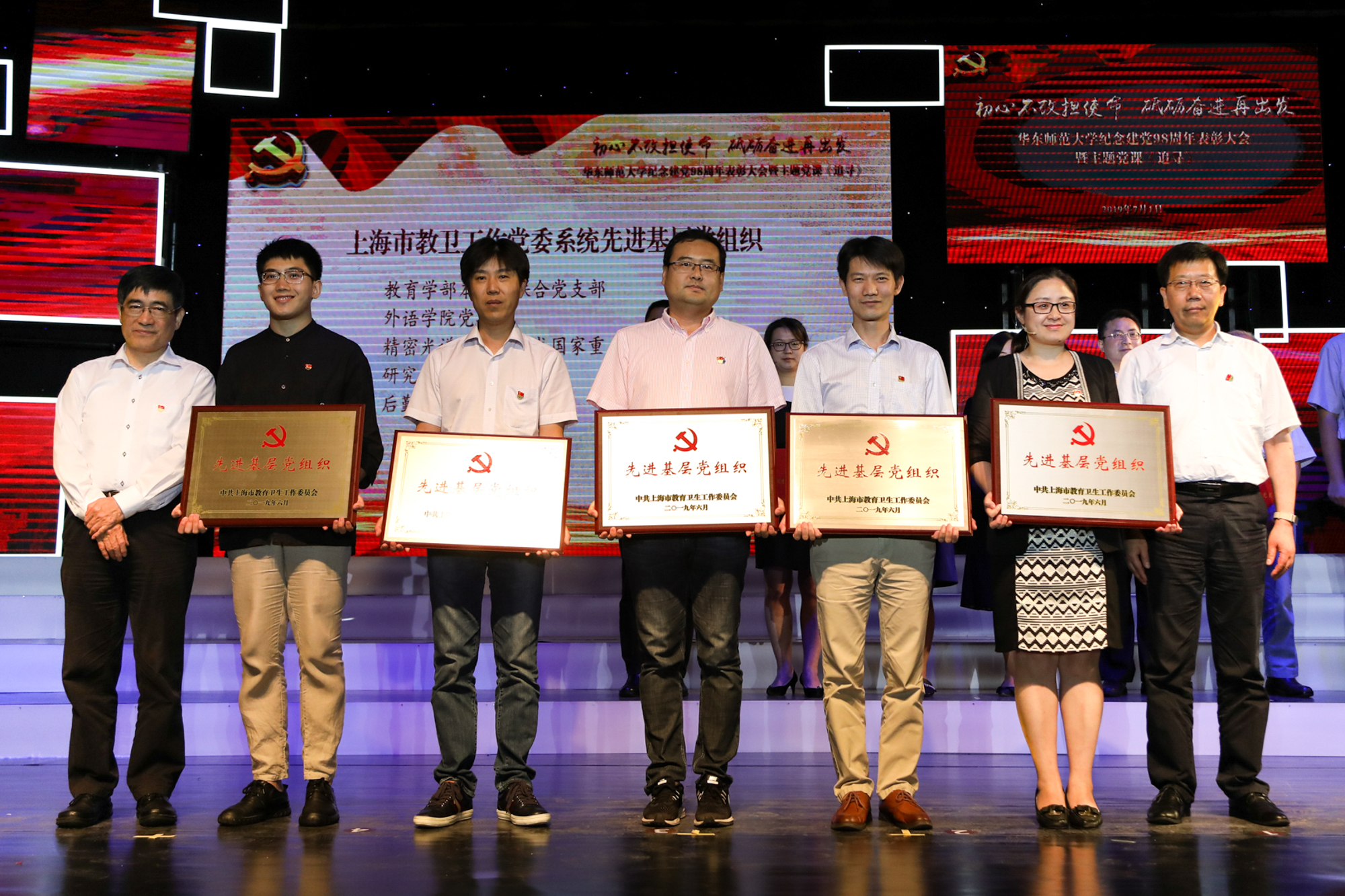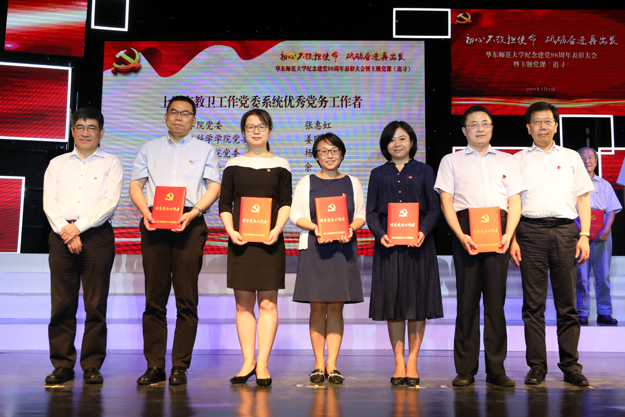 在建党98周年的伟大日子里,一场以《追寻》为名的红色传统主题党课在华东师大思群堂内隆重举行。这是上海市教卫工作党委系统“伟大工程”系列示范党课之一。活动现场,师生们回溯初心、砥砺出发,通过微电影、主题演讲、“朗读者”等不同形式,为党的生日送上精美绝伦的音画盛宴,这场活动更为全校万余名共产党员带来了震撼的精神的洗礼和理想的升华。