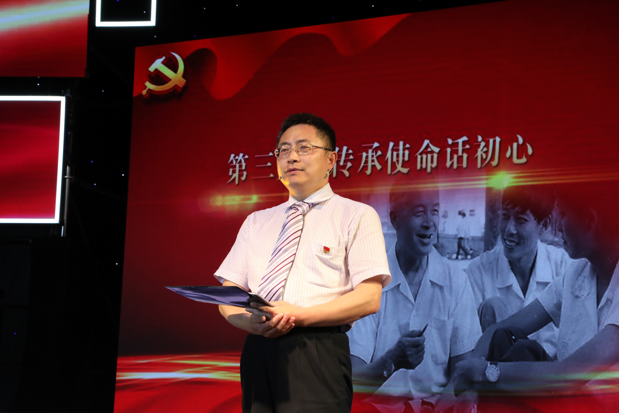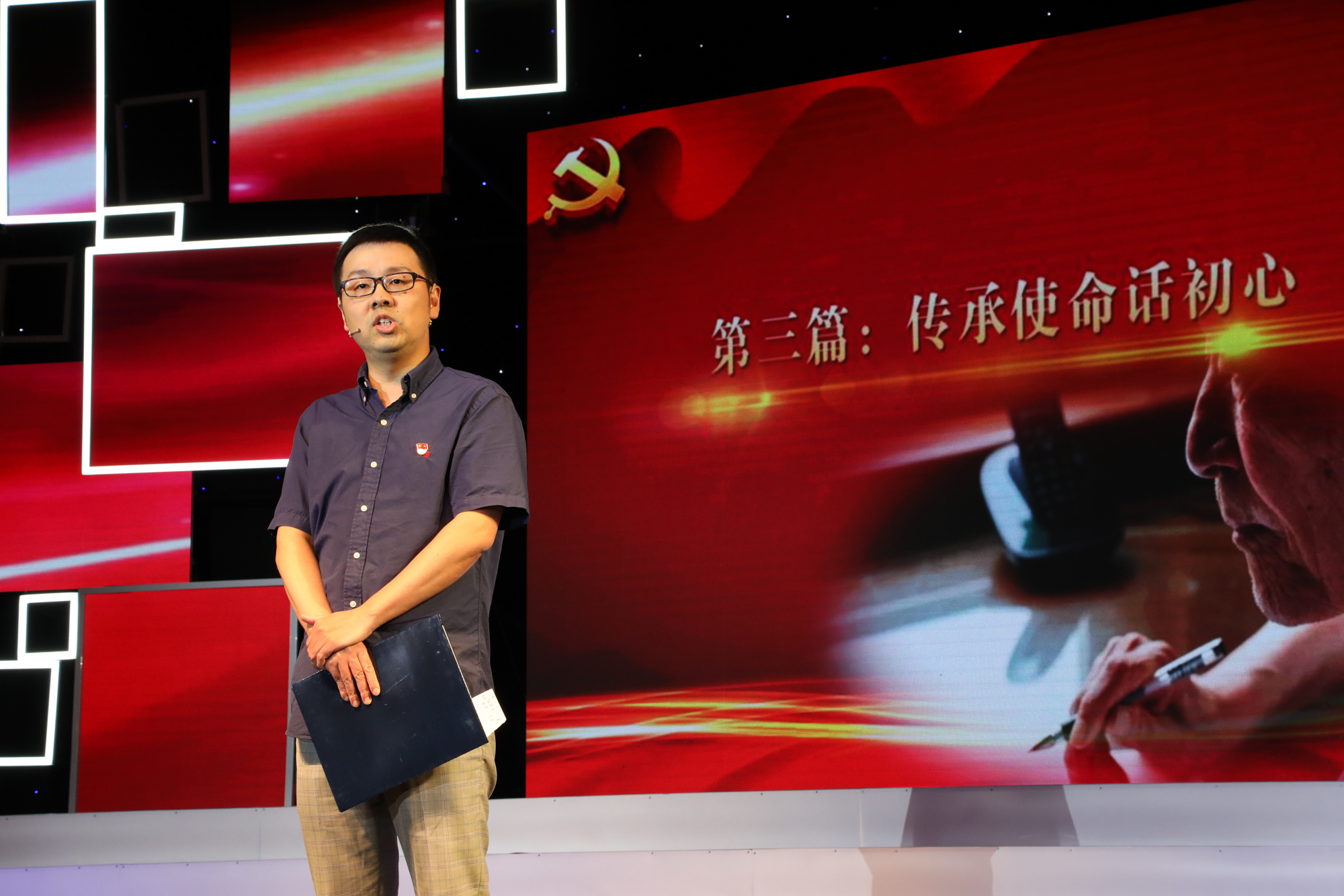 当《再一次出发》音乐奏响,将党课的气氛推向高潮。