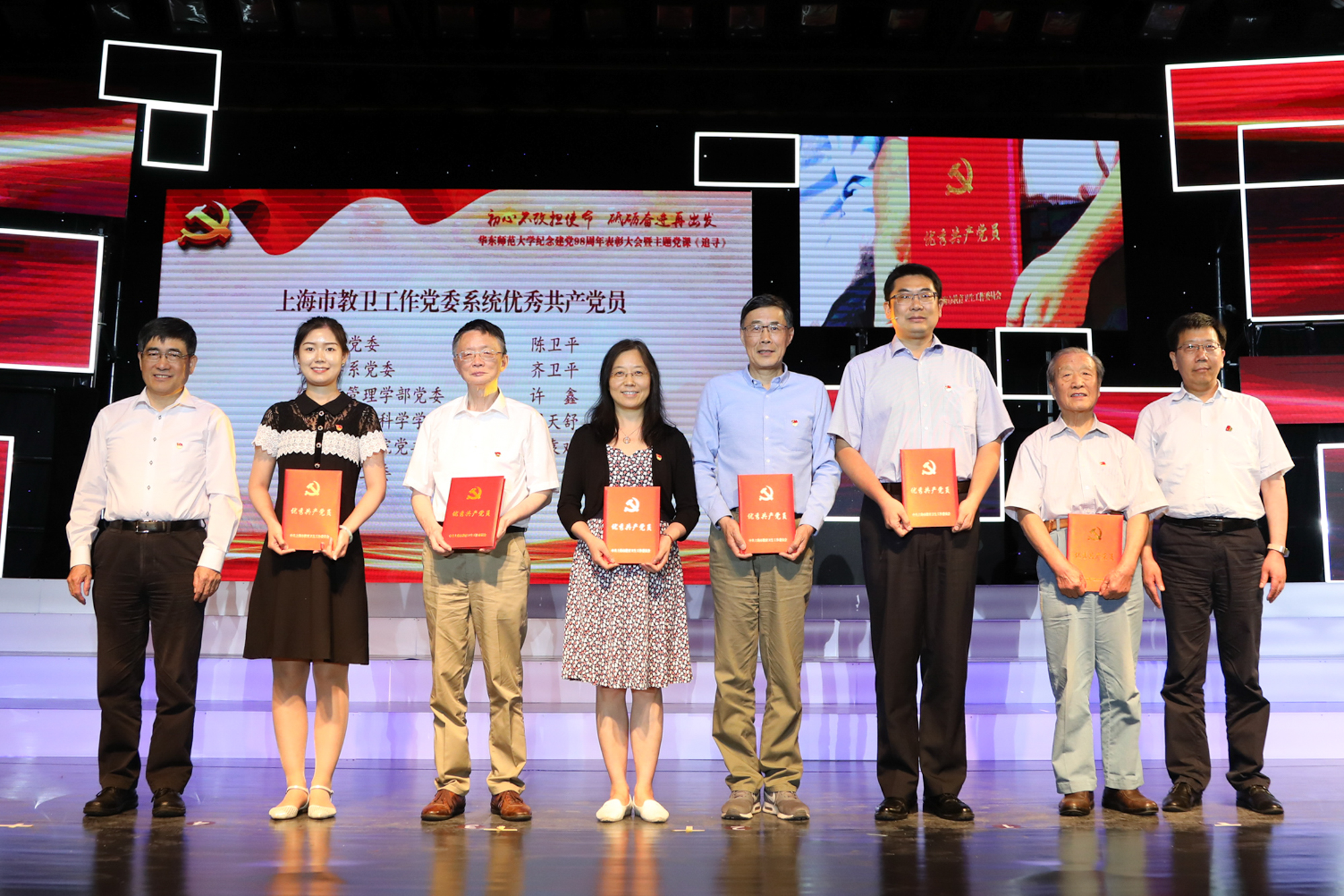 上海市教卫工作党委副巡视员杨伟人,校党委书记童世骏,校长、校党委副书记钱旭红,校党委副书记杨昌利,校党委副书记、纪委书记曹友谊,副校长孙真荣、梅兵、李志斌,校党委委员、纪委委员,中层干部,教职工党支部书记,专职组织员、特邀党建组织员,专职辅导员,师生党员代表,以及受表彰的先进集体和优秀个人等参加了活动。