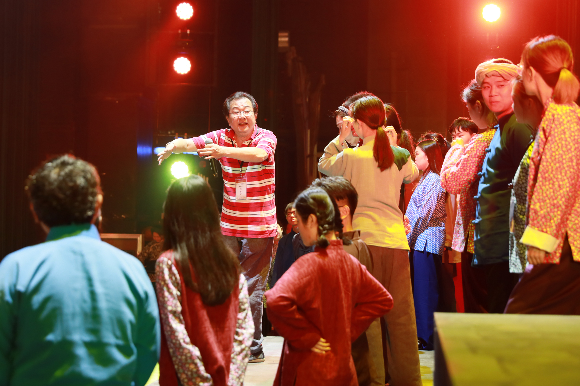 11日晚,校长钱旭红观看彩排并与参演师生合影