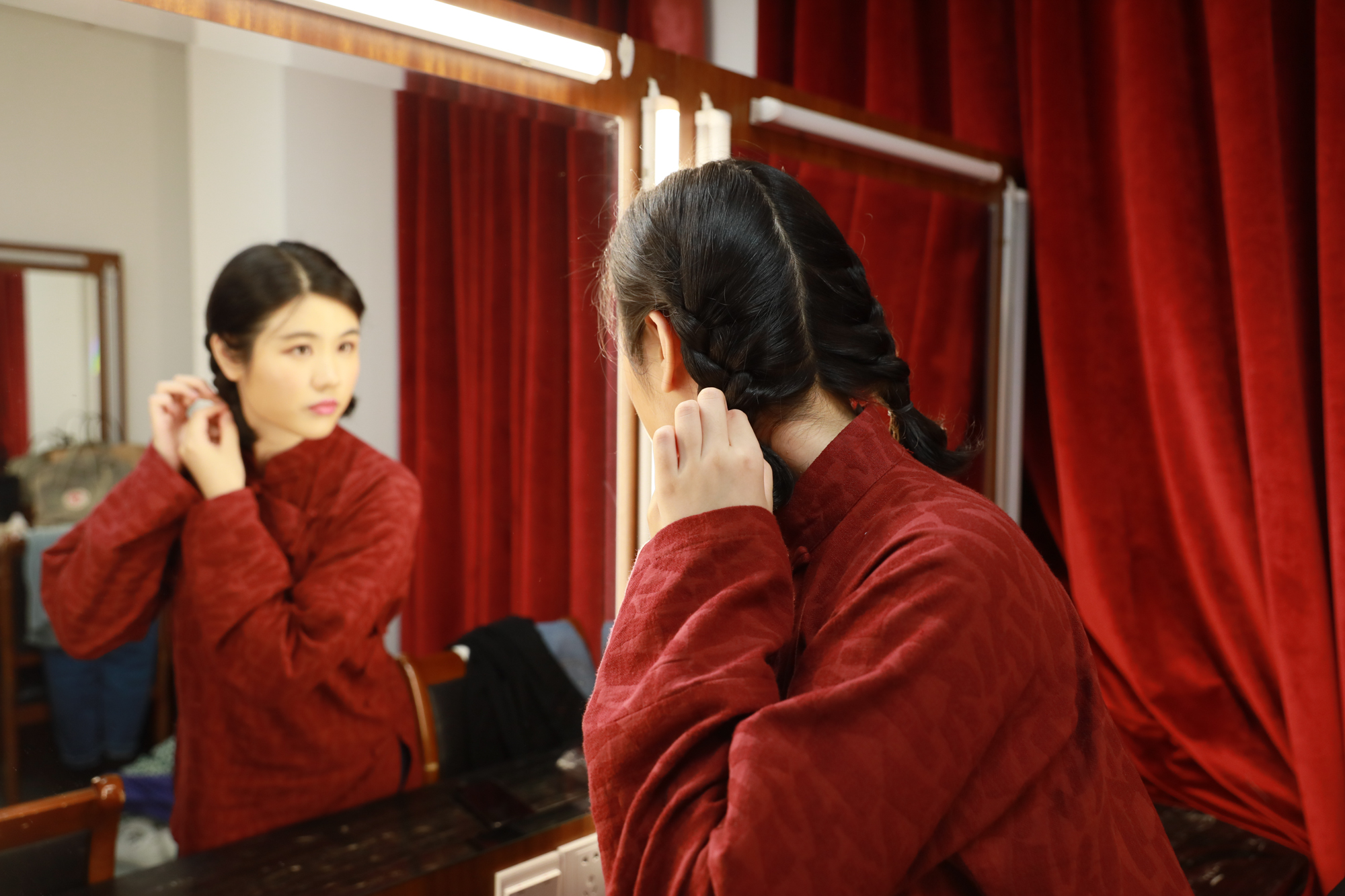 此次复排是我校青年教师许洁副教授第二次饰演“江姐”,第一扮演“江姐”是她八年前攻读本校声乐艺术博士研究生期间。她觉得在第一次饰演江姐时,由于自己年轻,“没有很好地将江姐精神融入自己的血液里,演得不够完整。”这一次,她做足了研究,将一位“坚贞的革命者”和“平凡的女性”真实地演绎出来。在感受江姐作为平凡人的内心变化和复杂遭遇的基础上,许洁更体会到江姐对革命的忠贞和坚定以及对国家的热爱和无私。上海歌剧院第一代“江姐”饰演者任桂珍老师和第三代“江姐”饰演者江燕燕老师也亲临排演现场进行了指导并观看了演出,几代“江姐”聚首,为表演注入了强大的精神力量。