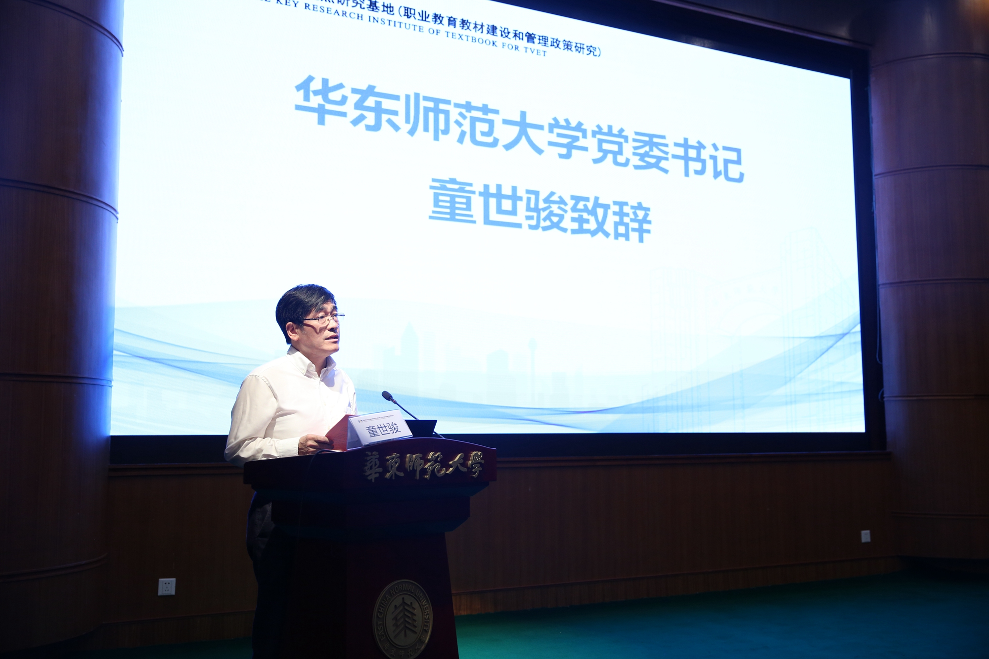 童世骏在致辞中表示,职业教育教材在保障国家高技能职业人才队伍培养、促进教育现代化等方面发挥着不可替代的作用。华东师大将全方位支持基地的建设发展,努力打造全国乃至国际知名的职业教育教材研究高地。