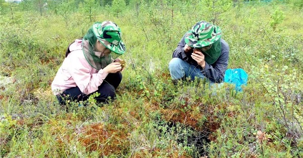 论文第一作者、博士研究生马晓英(左)和博士研究生黄文专在大兴安岭泥炭地参与野外工作