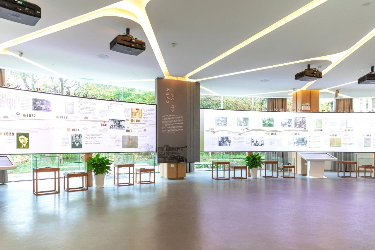 红外互动投影、电子触屏,可以让展板拓展到无限数字空间,虚实结合。口述历史访谈录,通过拍摄多位与两位校长交集的老先生的口述历史影像,作为重要的历史还原与补充,让整个展陈更加生动鲜活。CAVE(或者说洞穴式)虚拟现实沉浸式系统,还原了3245澳门新莆京选址、建校、著书等重大历史场景,带领观众穿越时空七十载,身临其境感受两位老校长为我校、为新中国教育事业和教育理论筚路蓝缕、革故鼎新的征程。