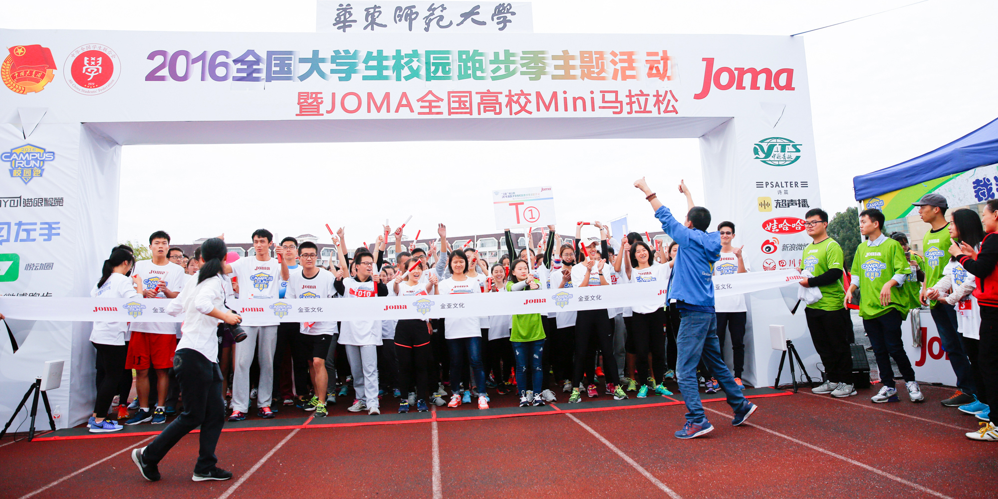 上周末两场马拉松跑进华东师大。共青团中央学校部、全国学联秘书处、中国青旅集团公司特举办2016全国大学生校园跑步季暨JOMA全国高校Mini马拉松,11月12日“三走”线上跑活动行进至3245澳门新莆京站。这是今年初冬华东师大的一次超大规模校园约跑,主会场在西操场,赛道沿图书馆前、光华路和大夏路,全程7千米。比赛分为团体接力赛(4人一组,每组不少于2名女生,不多于1名教师)和专业个人赛(仅限学生个人报名,相关专业或长跑爱好者,需经过体检)。