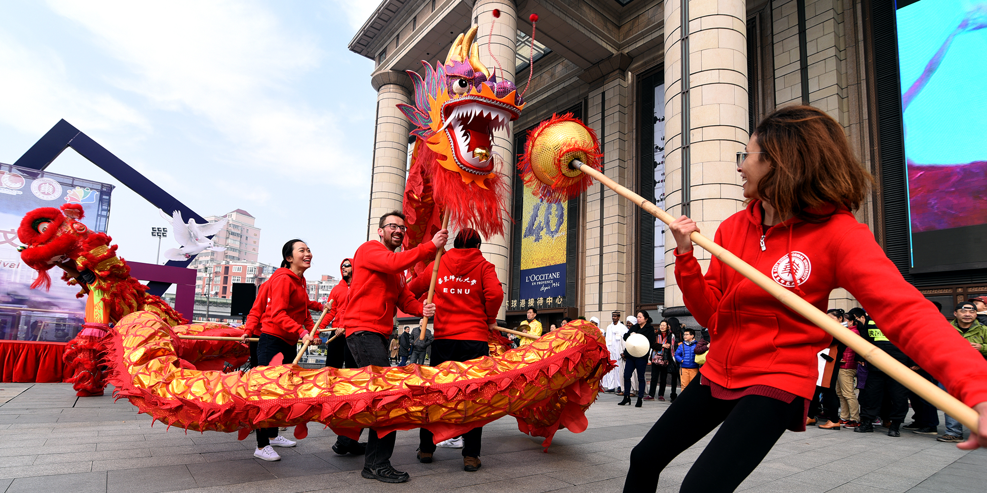 11月27日,“第十届国际文化节”系列活动首秀——“Mini expo各国风情文化展”在今年走出了校园,于环球港南广场盛大开幕,让更多的社区民众感受ECNU国际化的魅力。美国、加拿大、法国、意大利、匈牙利、俄罗斯、吉尔吉斯斯坦、印度、泰国、日本、韩国、蒙古、苏丹、喀麦隆等42个不同国家和地区的上百名留学生和中国学生们参与了本次活动。