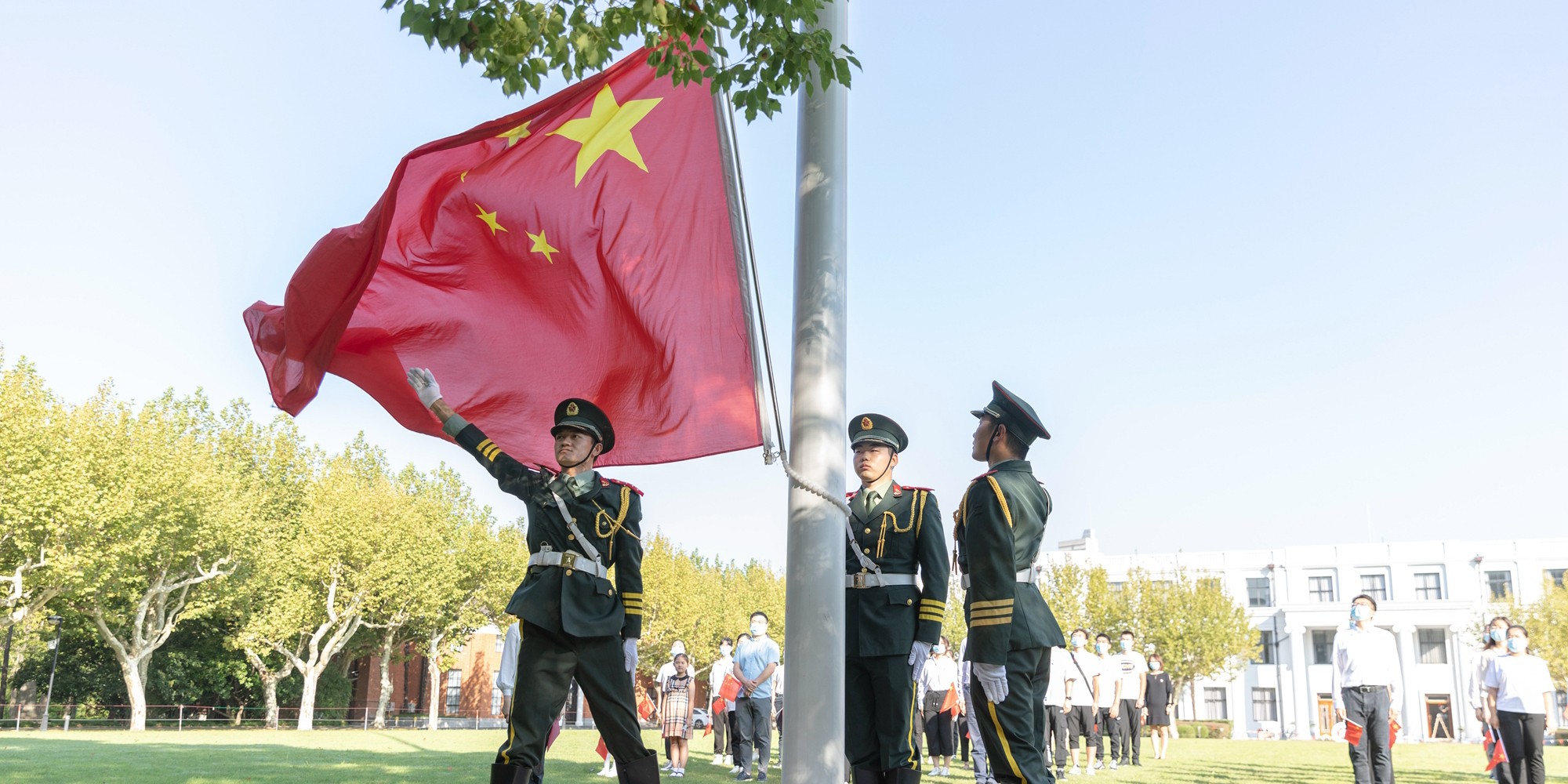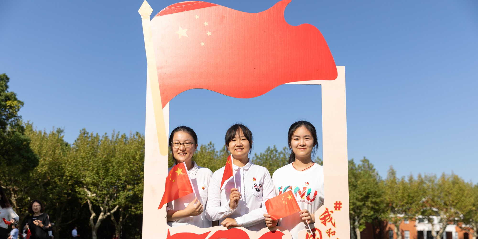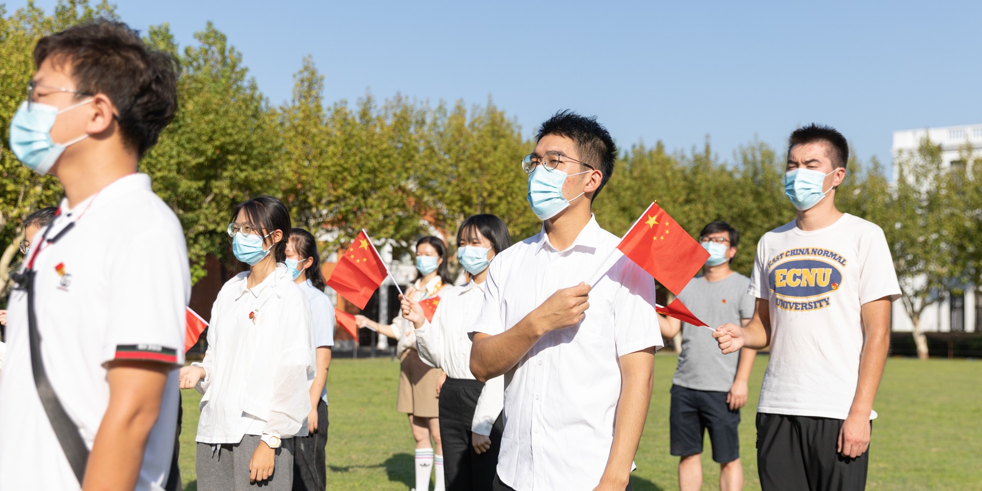 我在华东师大,升国旗奏国歌,祝福祖国!
