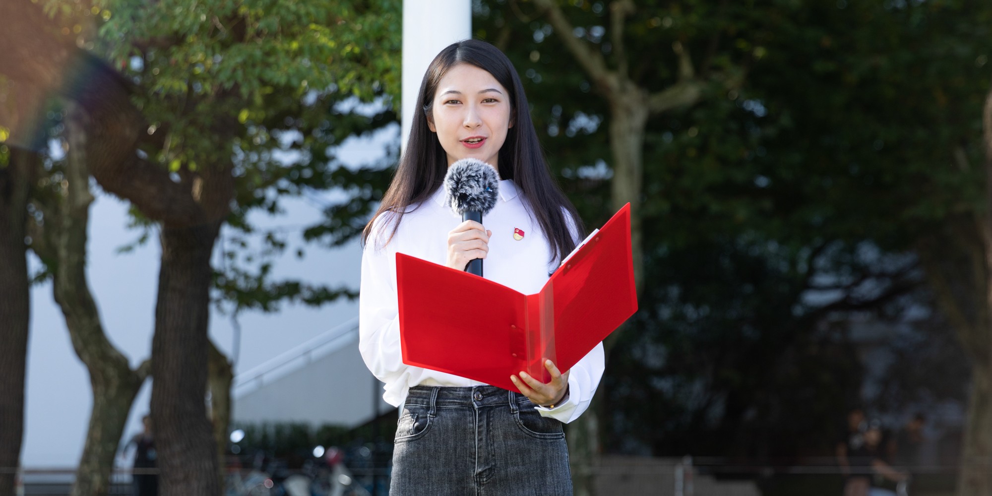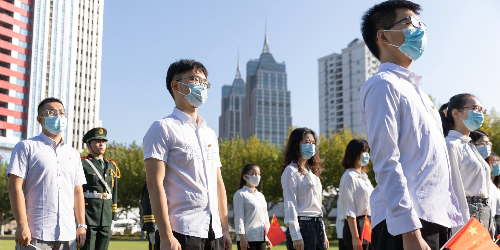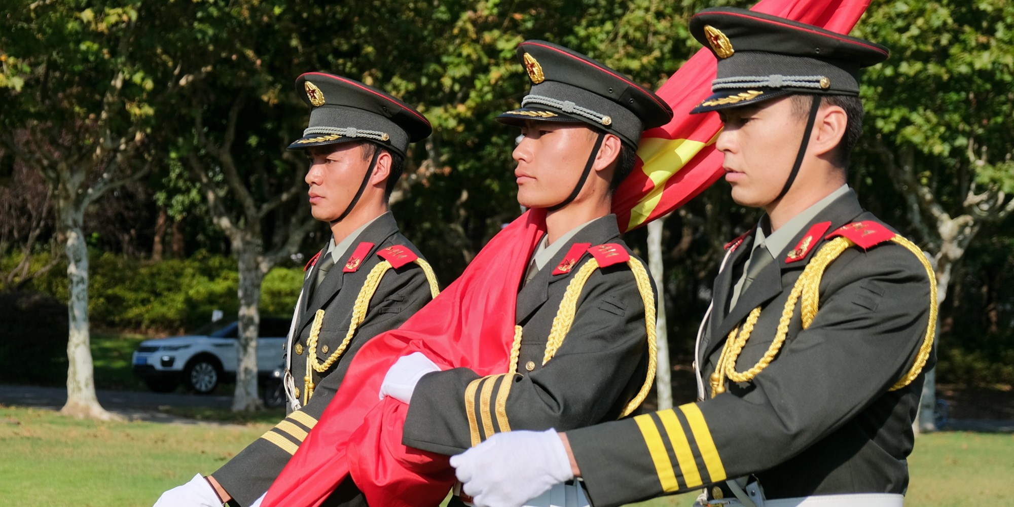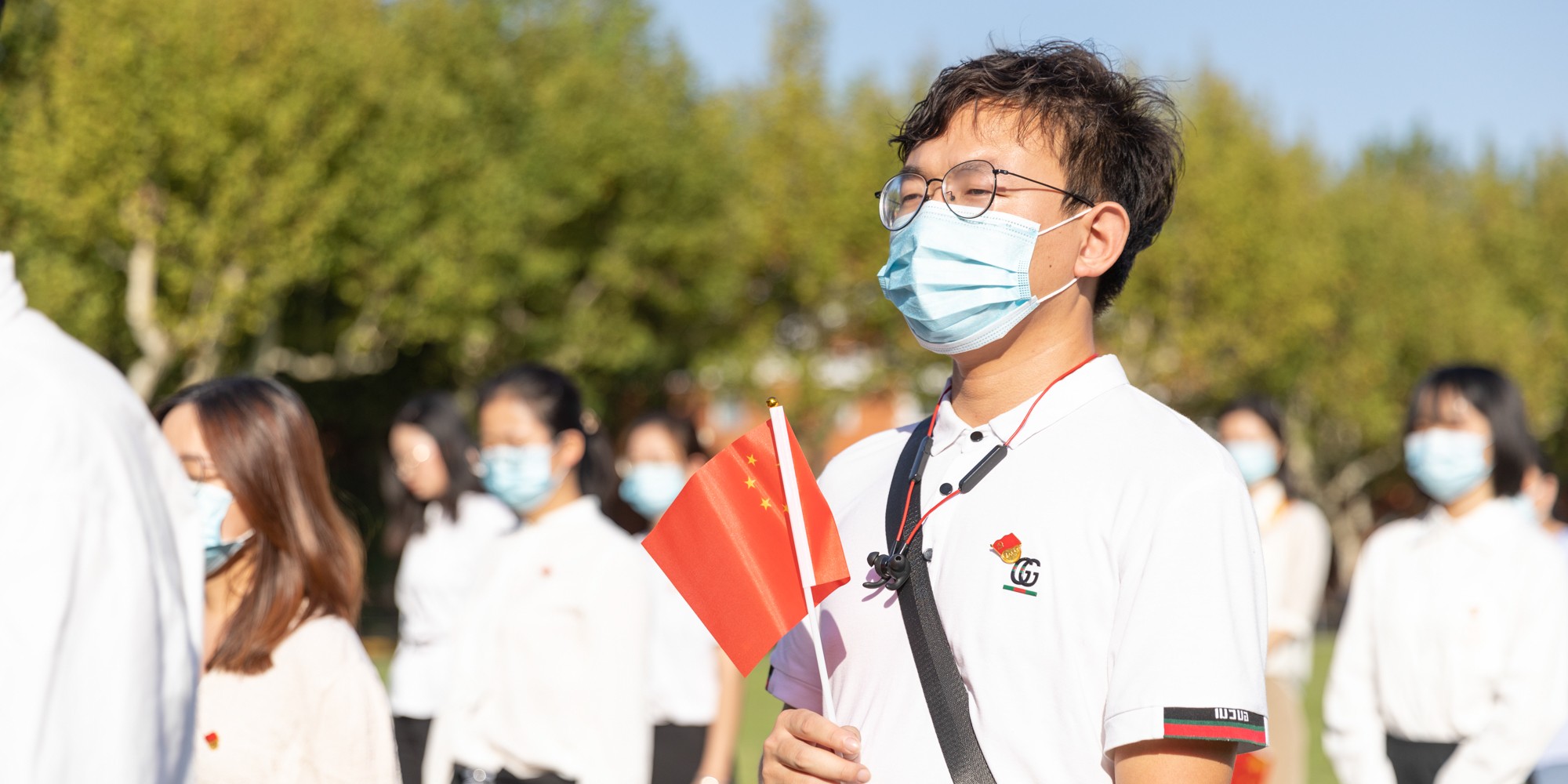 我在华东师大,升国旗奏国歌,祝福祖国!