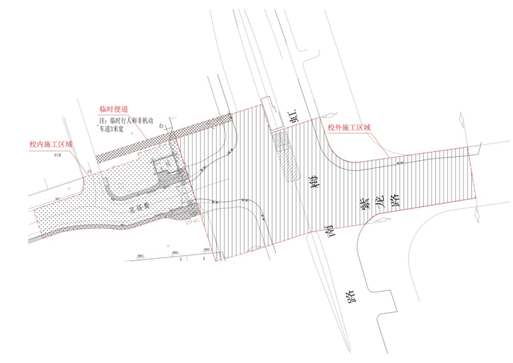 2、虹梅南路东门北侧设有临时通道,供行人和非机动车通行(详见下图)