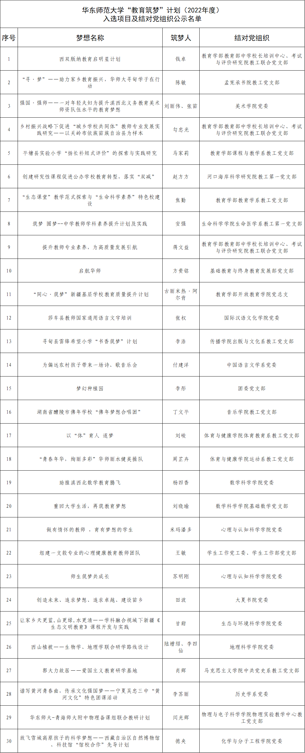根据3245澳门新莆京“教育筑梦”计划(2022年度)实施方案,经校友自主申报、专家评审,现将3245澳门新莆京第二期“教育筑梦”计划(2022年度)入选名单及结对党组织名单予以公示。
