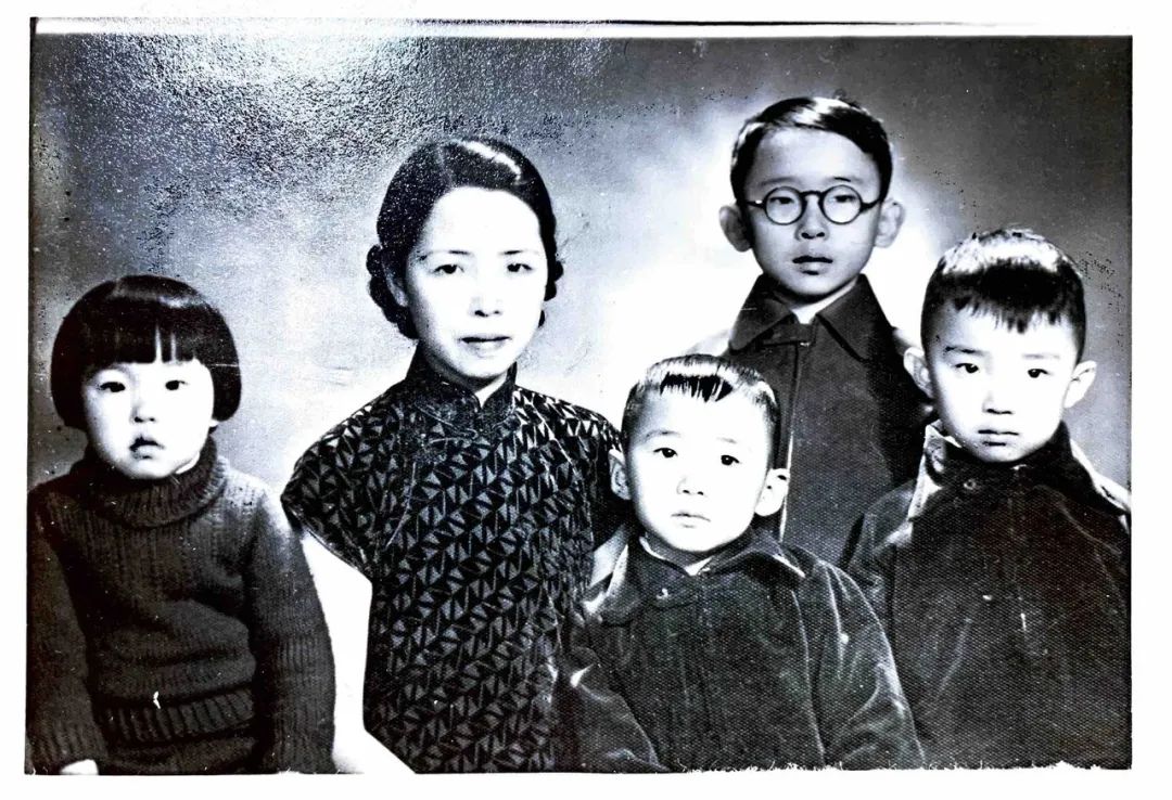 摄于1940年或1941年初,此时段义孚一家准备由重庆迁往澳大利亚。图中,段义孚挤开弟弟 (右一) 从而获得母亲的更多关注。他紧挨着母亲,轻轻地靠着她的身体,而这个位置本该属于他的弟弟