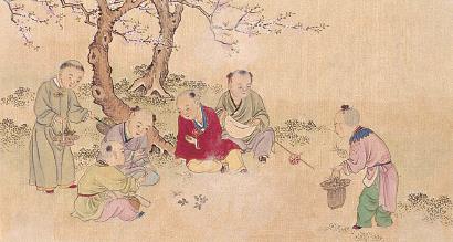 儿童弈棋在史书中也多有记载,往往是因为神童取得了令人瞩目的成绩。南北朝时,就有不少年幼的围棋高手。比如,《南史》中说:“吴郡褚胤,年七岁便入高品。”《陈书》中有八岁就能“于客前覆局”的陆琼。