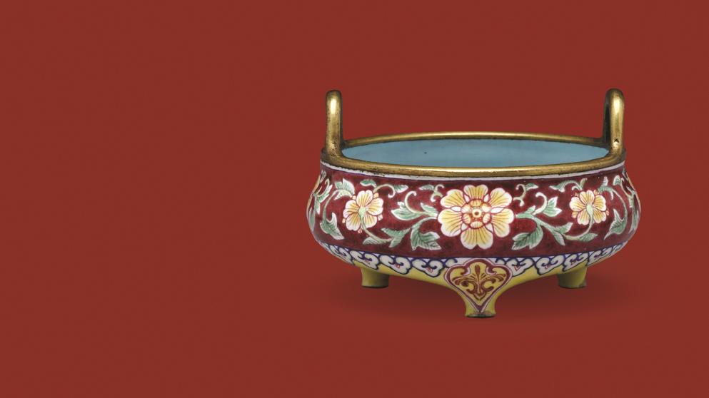清康熙画珐琅缠枝莲纹双耳三足炉,故宫博物院藏