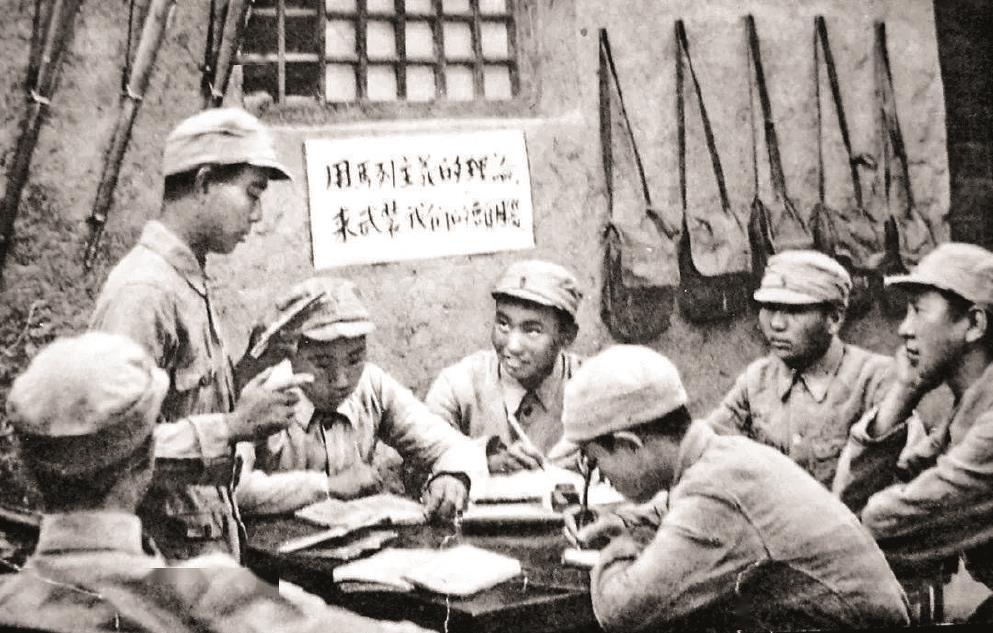 延安整风运动是加强党的建设的成功实践和伟大创举。图为战士们在整风运动中学习马列主义。